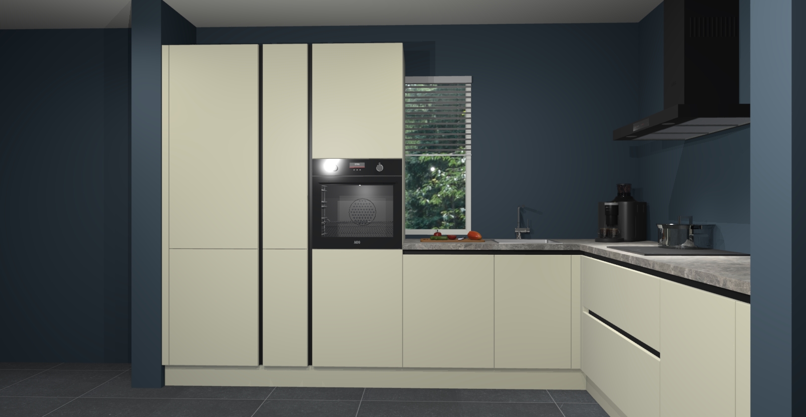 Met een modern, tijdloos design en ruime opslagruimte, zult u zich in no-time thuis voelen in uw nieuwe keuken. Uw leven wordt eenvoudiger met de soft-close deuren die voor het ultieme stille comfort zorgen - geen geluid dat u stoort terwijl u kookt. Ook is de keuken voorzien van 5 ingebouwde apparaten: een oven, inductie kookplaat, afzuigkap, vaatwasser en koelkast. Deze kunnen gemakkelijk na bestelling worden bijgewerkt naar AEG - waardoor uw luxe ervaring compleet is.