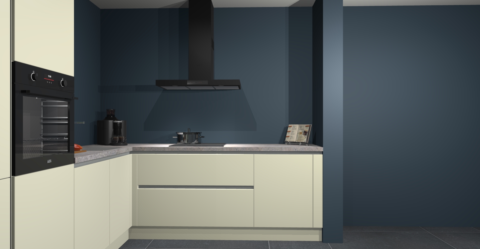Met een modern, tijdloos design en ruime opslagruimte, zult u zich in no-time thuis voelen in uw nieuwe keuken. Uw leven wordt eenvoudiger met de soft-close deuren die voor het ultieme stille comfort zorgen - geen geluid dat u stoort terwijl u kookt. Ook is de keuken voorzien van 5 ingebouwde apparaten: een oven, inductie kookplaat, afzuigkap, vaatwasser en koelkast. Deze kunnen gemakkelijk na bestelling worden bijgewerkt naar AEG - waardoor uw luxe ervaring compleet is.