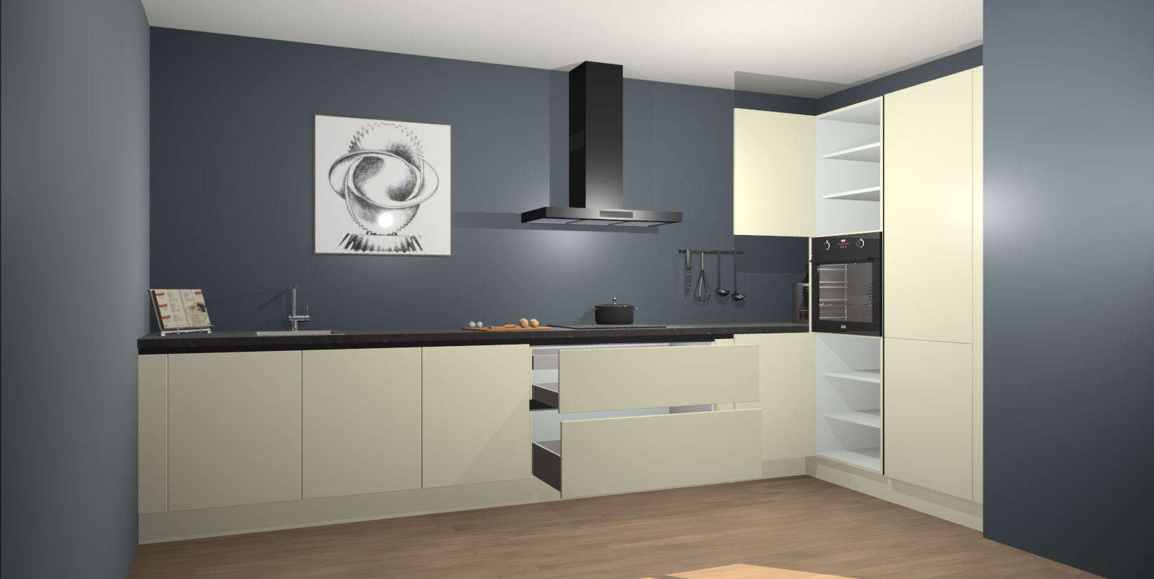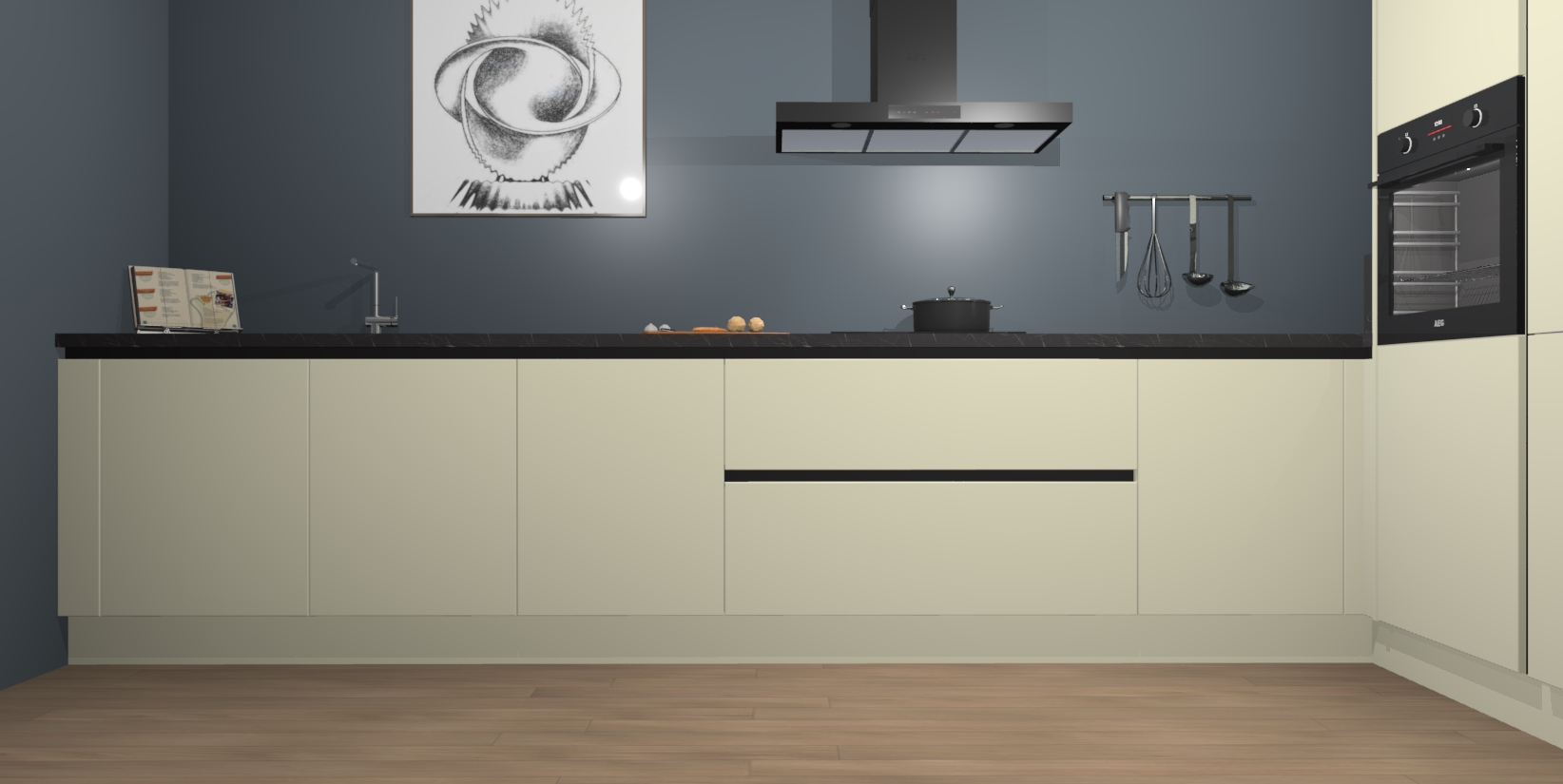 Inclusief plinten, stelpoten en werkblad