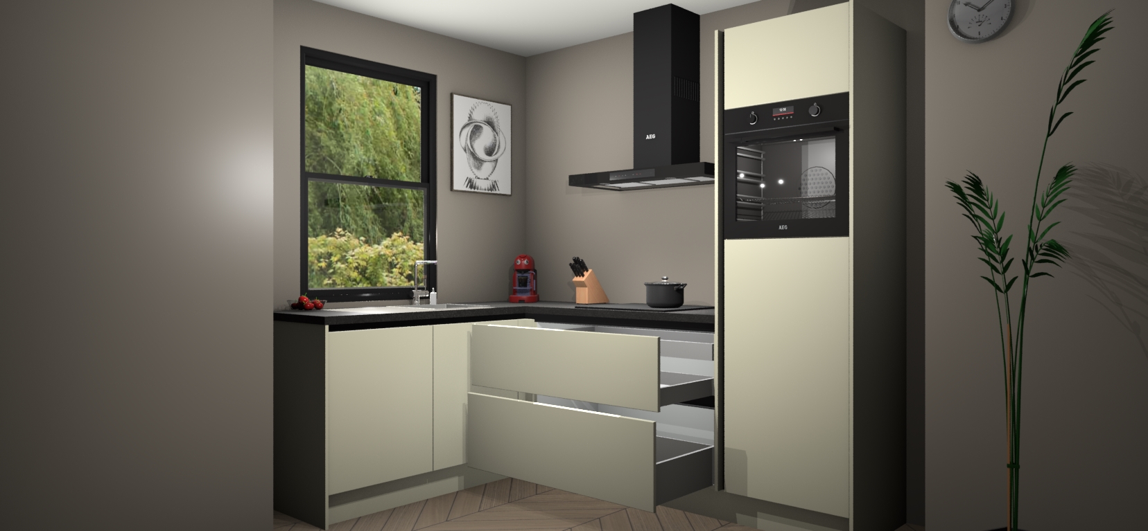 In deze box zijn alle kleuren verzameld van de deuren en werkbladen. Vraag de gratis kleurenbox aan en kijk thuis rustig verder!