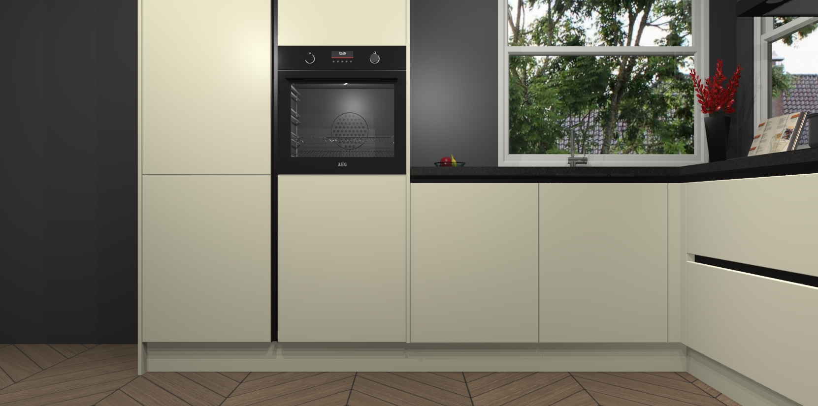 De Magnolia greeploze keuken Kotor wordt geleverd met vijf inbouwapparaten, waaronder een oven, inductiekookplaat, afzuigkap, vaatwasser en koelkast. En als u uw apparatuur wilt upgraden, kunnen we u na bestelling eenvoudig helpen overstappen naar AEG. Bovendien heeft deze keuken soft close deuren, zodat lades en kastjes geruisloos en zonder klepperen sluiten!