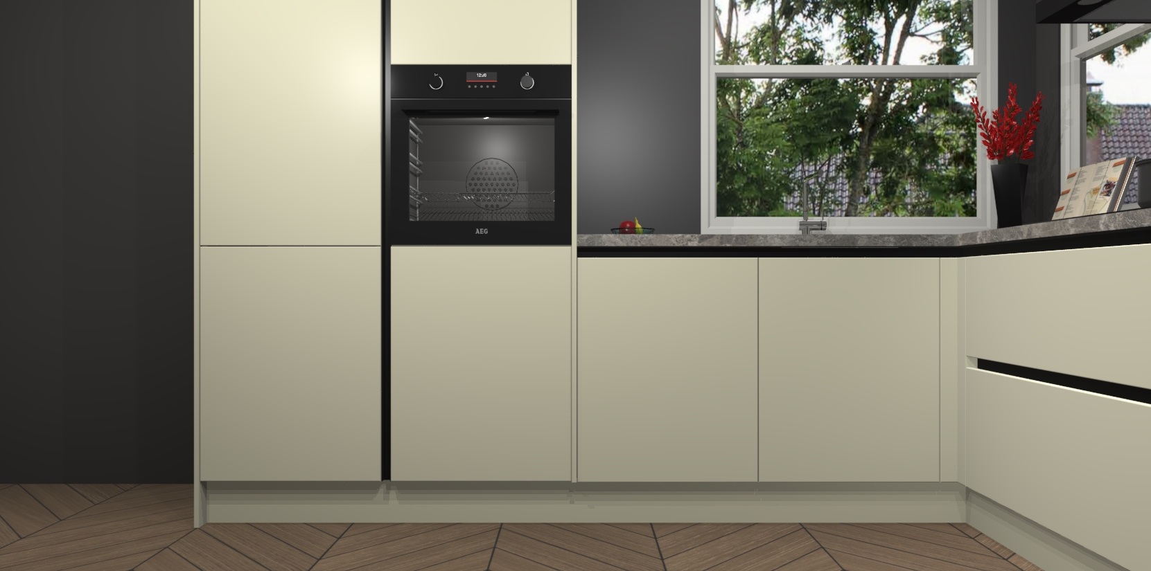 De Magnolia greeploze keuken Kotor wordt geleverd met vijf inbouwapparaten, waaronder een oven, inductiekookplaat, afzuigkap, vaatwasser en koelkast. En als u uw apparatuur wilt upgraden, kunnen we u na bestelling eenvoudig helpen overstappen naar AEG. Bovendien heeft deze keuken soft close deuren, zodat lades en kastjes geruisloos en zonder klepperen sluiten!