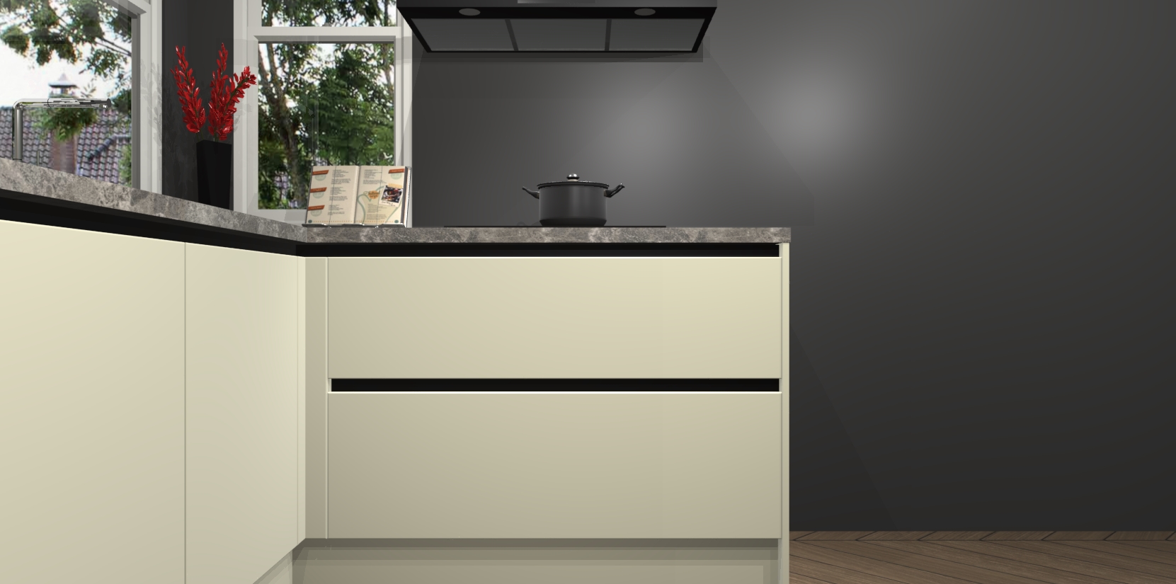Inclusief plinten, stelpoten en werkblad