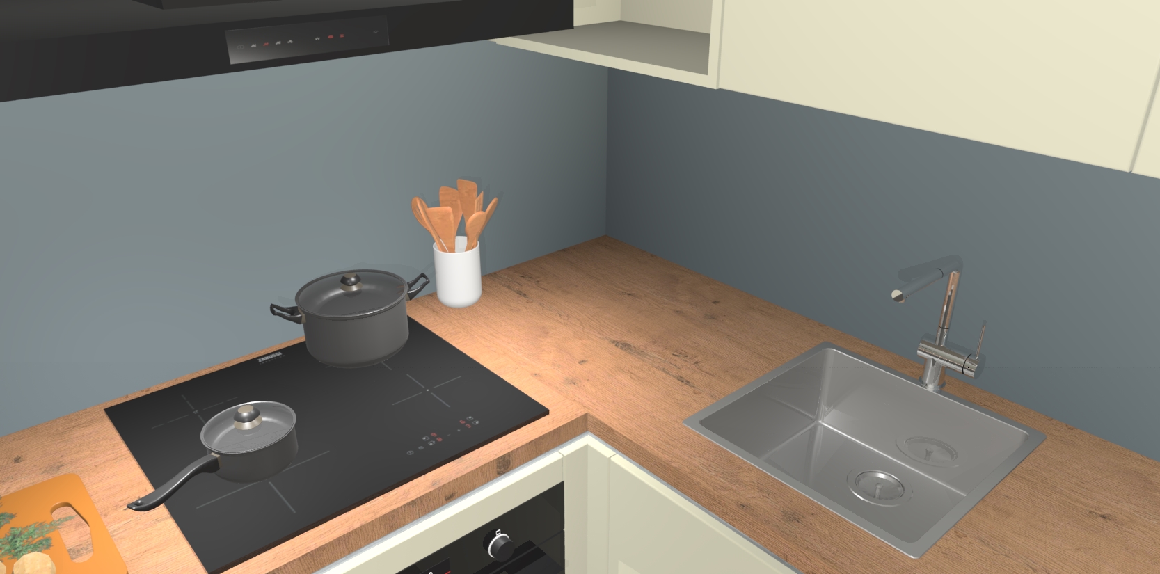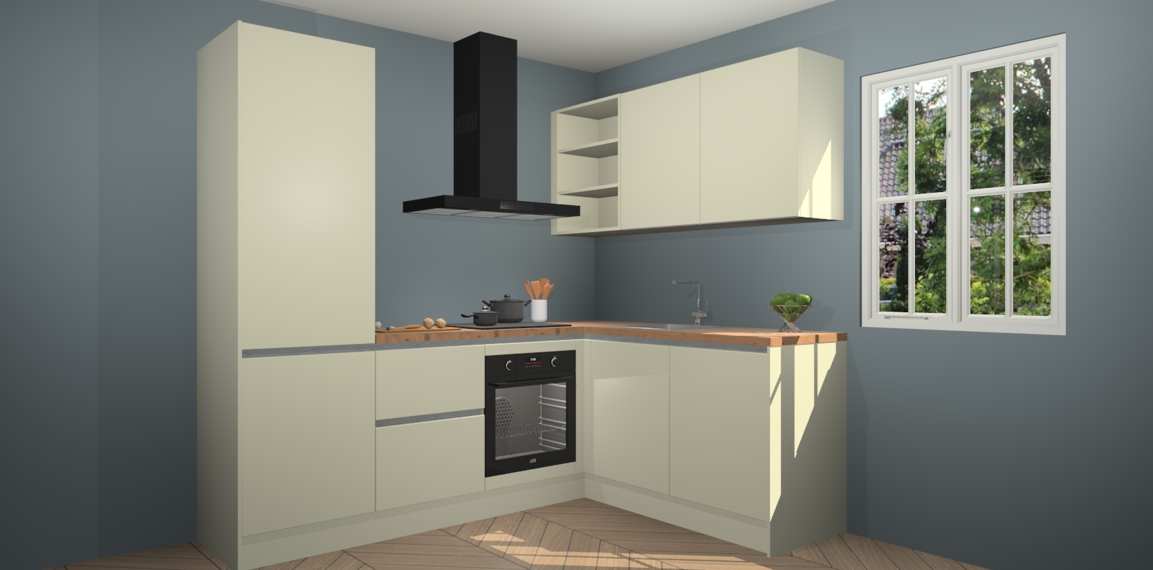 Inclusief plinten, stelpoten en werkblad