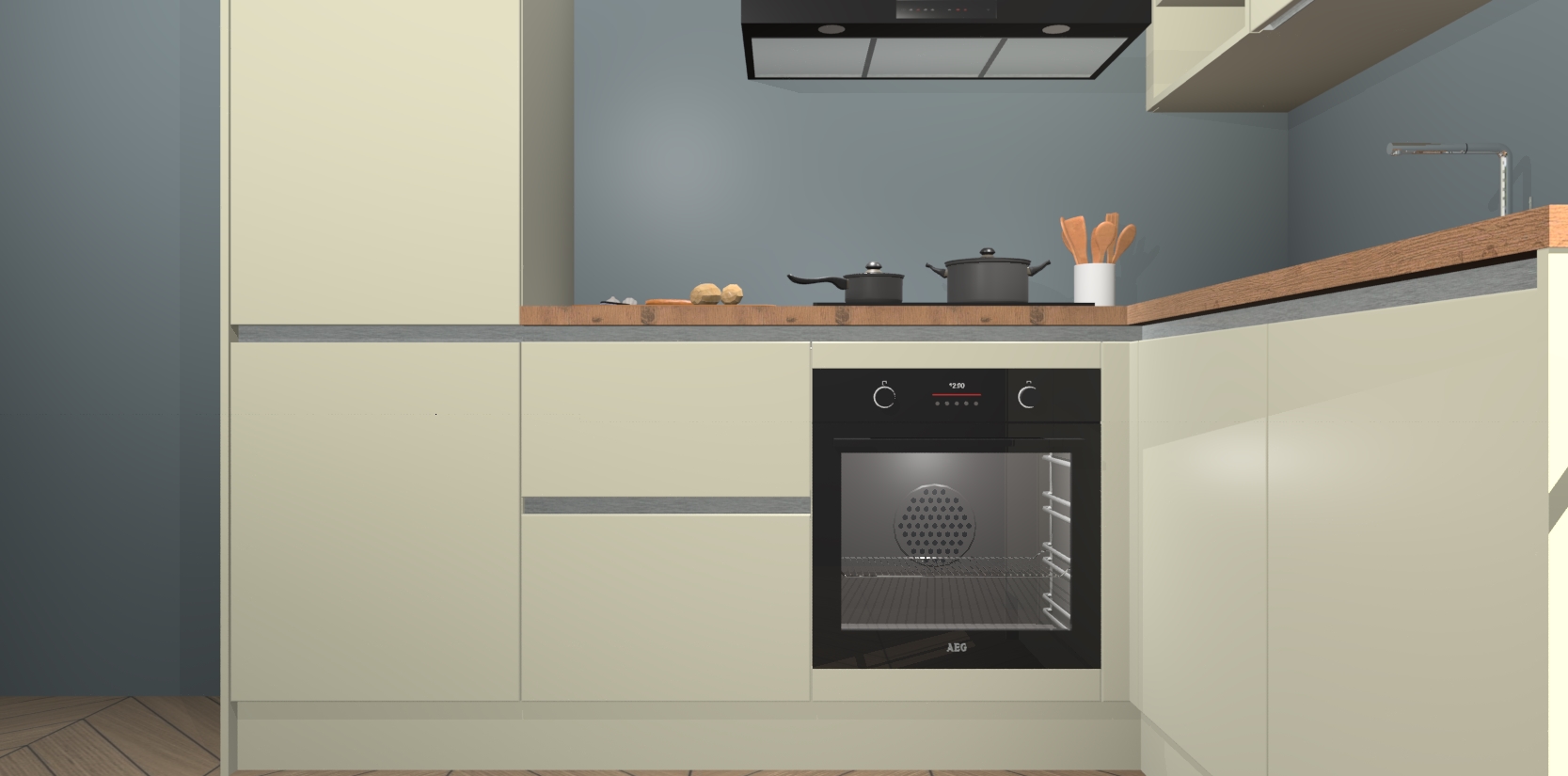 Dit model biedt u voldoende opbergruimte en vijf ingebouwde apparaten: een oven, inductiekookplaat, afzuigkap, vaatwasser en koelkast. Deze apparaten kunnen gemakkelijk worden geüpgrade naar AEG nadat u besteld heeft. De verschillende laden en kastjes bevatten softclose-deuren waardoor ze gezellig dichtvallen met een geruststellend helemaal geruisloos geluid. En dat is nog niet alles! We garanderen ook dat de prijs altijd laag blijft - dus haal nu uw Magnolia greeploze keuken Krakau terwijl het kan.