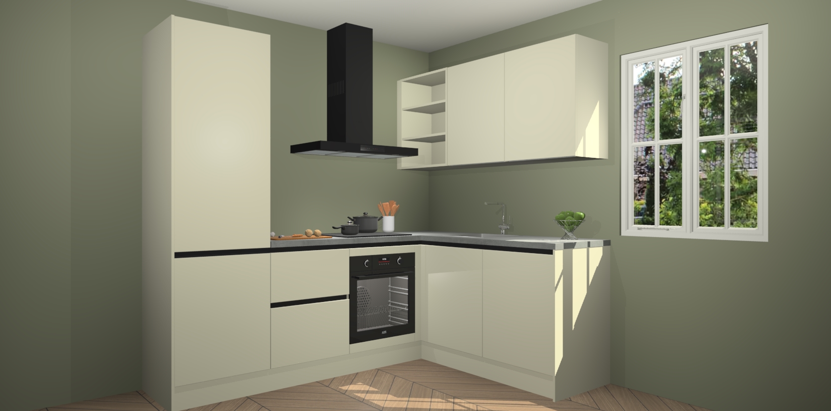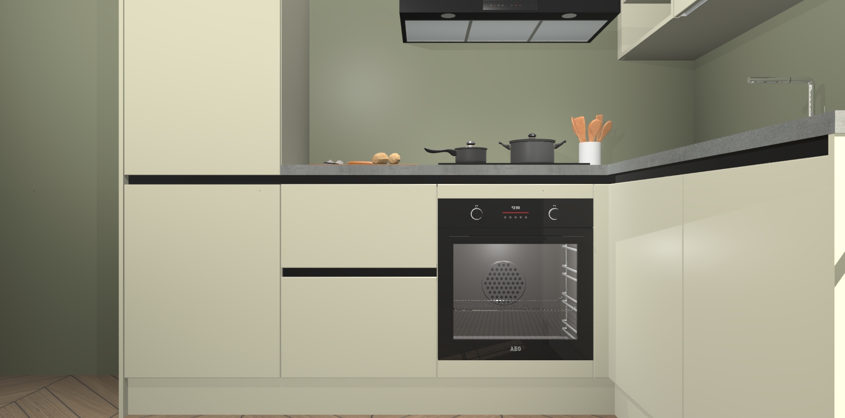Dit model biedt u voldoende opbergruimte en vijf ingebouwde apparaten: een oven, inductiekookplaat, afzuigkap, vaatwasser en koelkast. Deze apparaten kunnen gemakkelijk worden geüpgrade naar AEG nadat u besteld heeft. De verschillende laden en kastjes bevatten softclose-deuren waardoor ze gezellig dichtvallen met een geruststellend helemaal geruisloos geluid. En dat is nog niet alles! We garanderen ook dat de prijs altijd laag blijft - dus haal nu uw Magnolia greeploze keuken Krakau terwijl het kan.