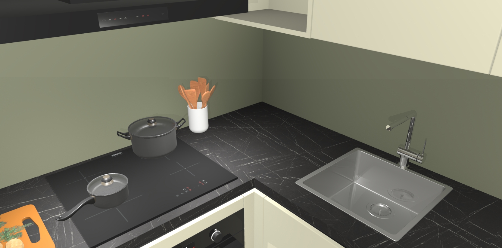 - Uitsparing van kookplaat, spoelbak en kraan dient u zelf te verzorgen.