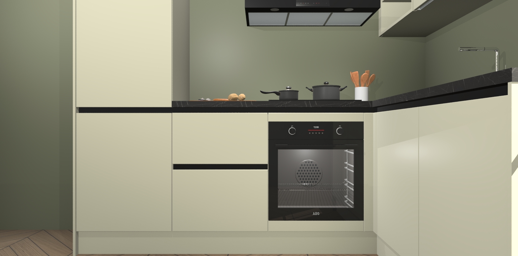 Dit model biedt u voldoende opbergruimte en vijf ingebouwde apparaten: een oven, inductiekookplaat, afzuigkap, vaatwasser en koelkast. Deze apparaten kunnen gemakkelijk worden geüpgrade naar AEG nadat u besteld heeft. De verschillende laden en kastjes bevatten softclose-deuren waardoor ze gezellig dichtvallen met een geruststellend helemaal geruisloos geluid. En dat is nog niet alles! We garanderen ook dat de prijs altijd laag blijft - dus haal nu uw Magnolia greeploze keuken Krakau terwijl het kan.