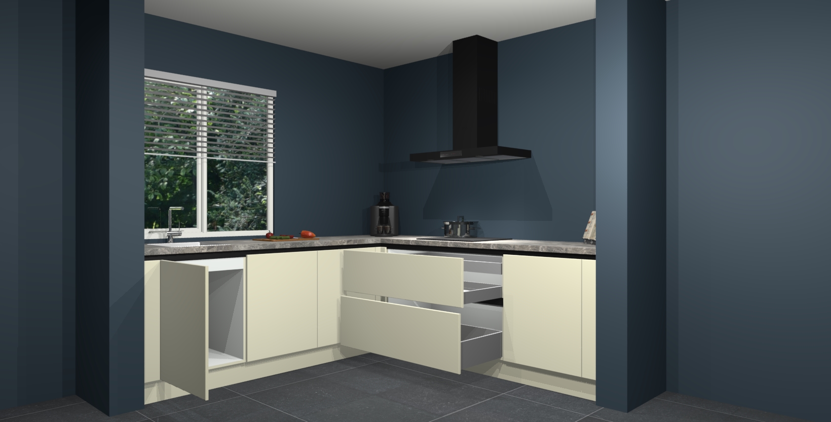 Inclusief plinten, stelpoten en werkblad