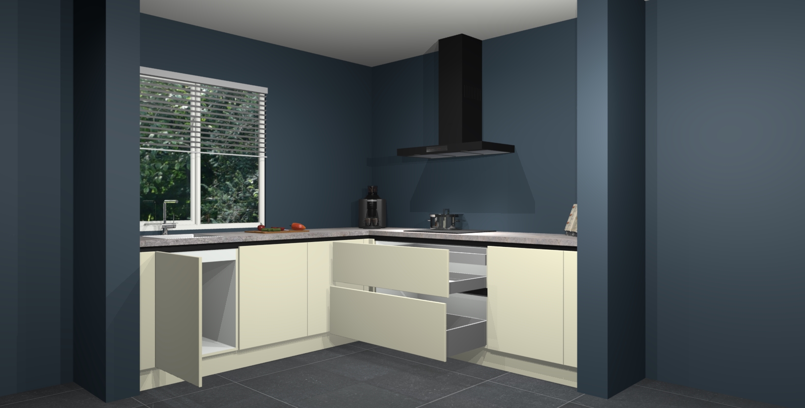 In deze box zijn alle kleuren verzameld van de deuren en werkbladen. Vraag de gratis kleurenbox aan en kijk thuis rustig verder!
