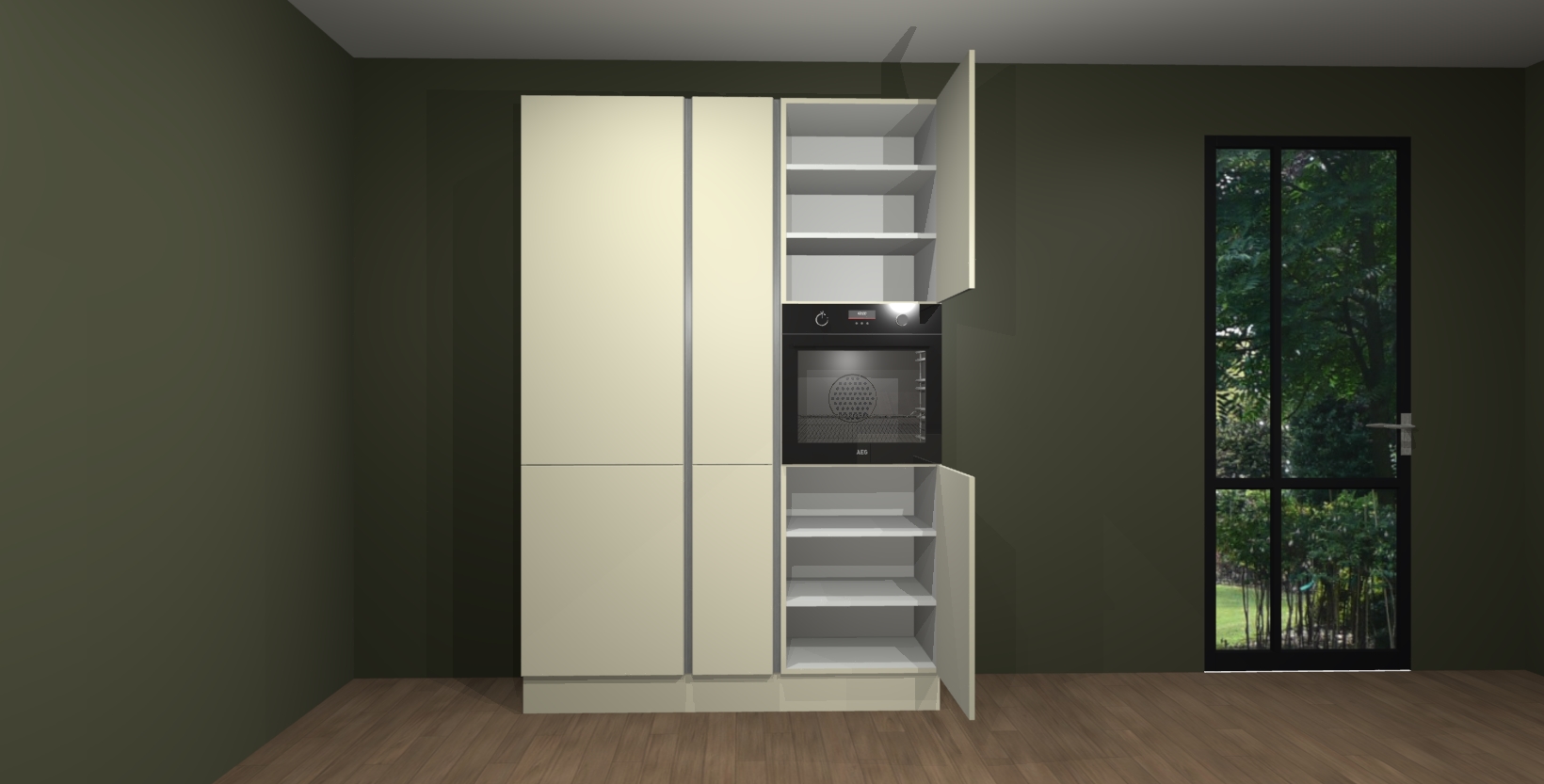 Met een modern, tijdloos design en ruime opslagruimte, zult u zich in no-time thuis voelen in uw nieuwe keuken. Uw leven wordt eenvoudiger met de soft-close deuren die voor het ultieme stille comfort zorgen - geen geluid dat u stoort terwijl u kookt. Ook is de keuken voorzien van 5 ingebouwde apparaten: een oven, inductie kookplaat, afzuigkap, vaatwasser en koelkast. Deze kunnen gemakkelijk na bestelling worden bijgewerkt naar AEG - waardoor uw luxe ervaring compleet is.