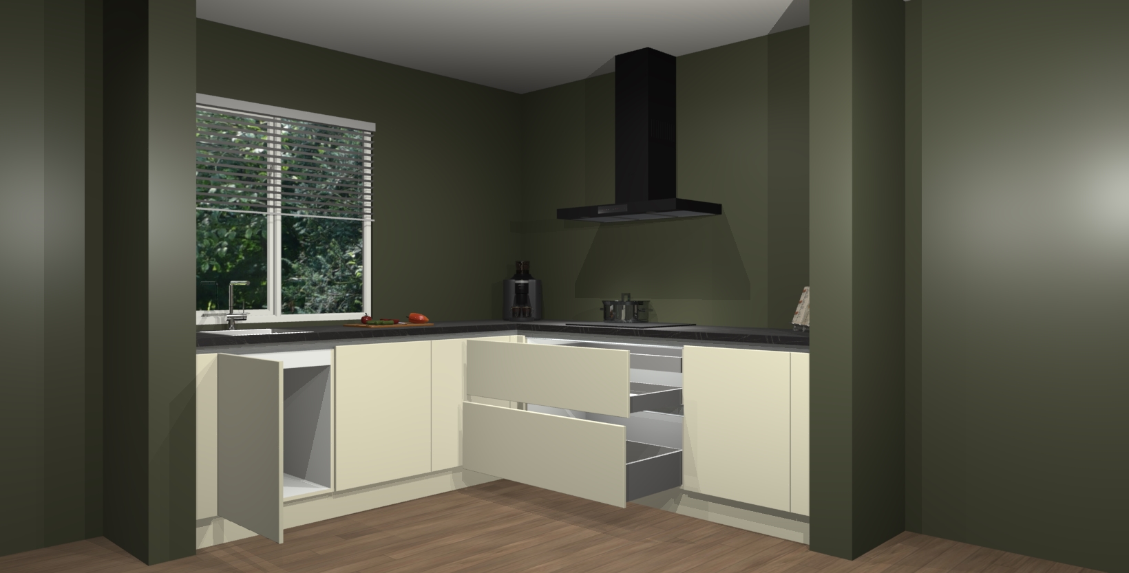 In deze box zijn alle kleuren verzameld van de deuren en werkbladen. Vraag de gratis kleurenbox aan en kijk thuis rustig verder!