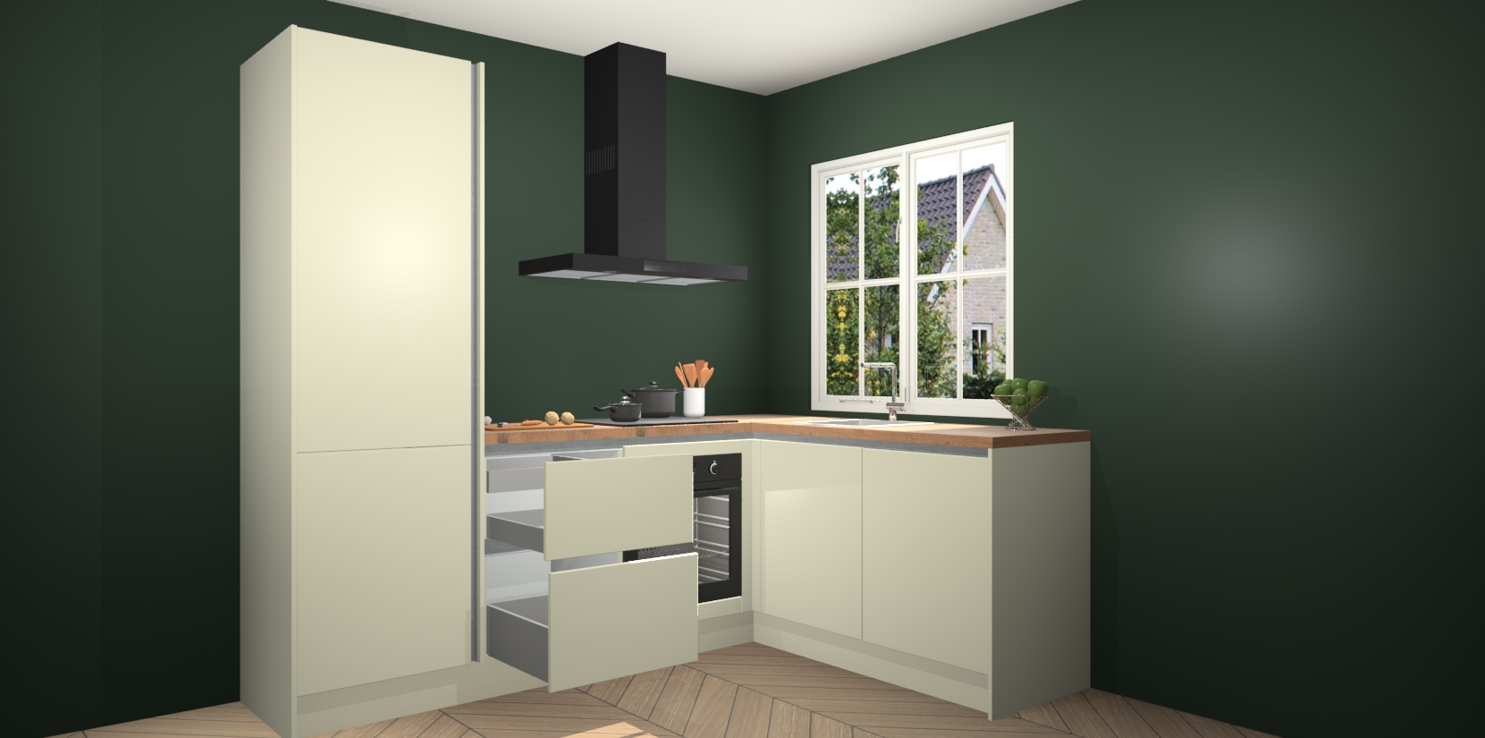 Inclusief plinten, stelpoten en werkblad