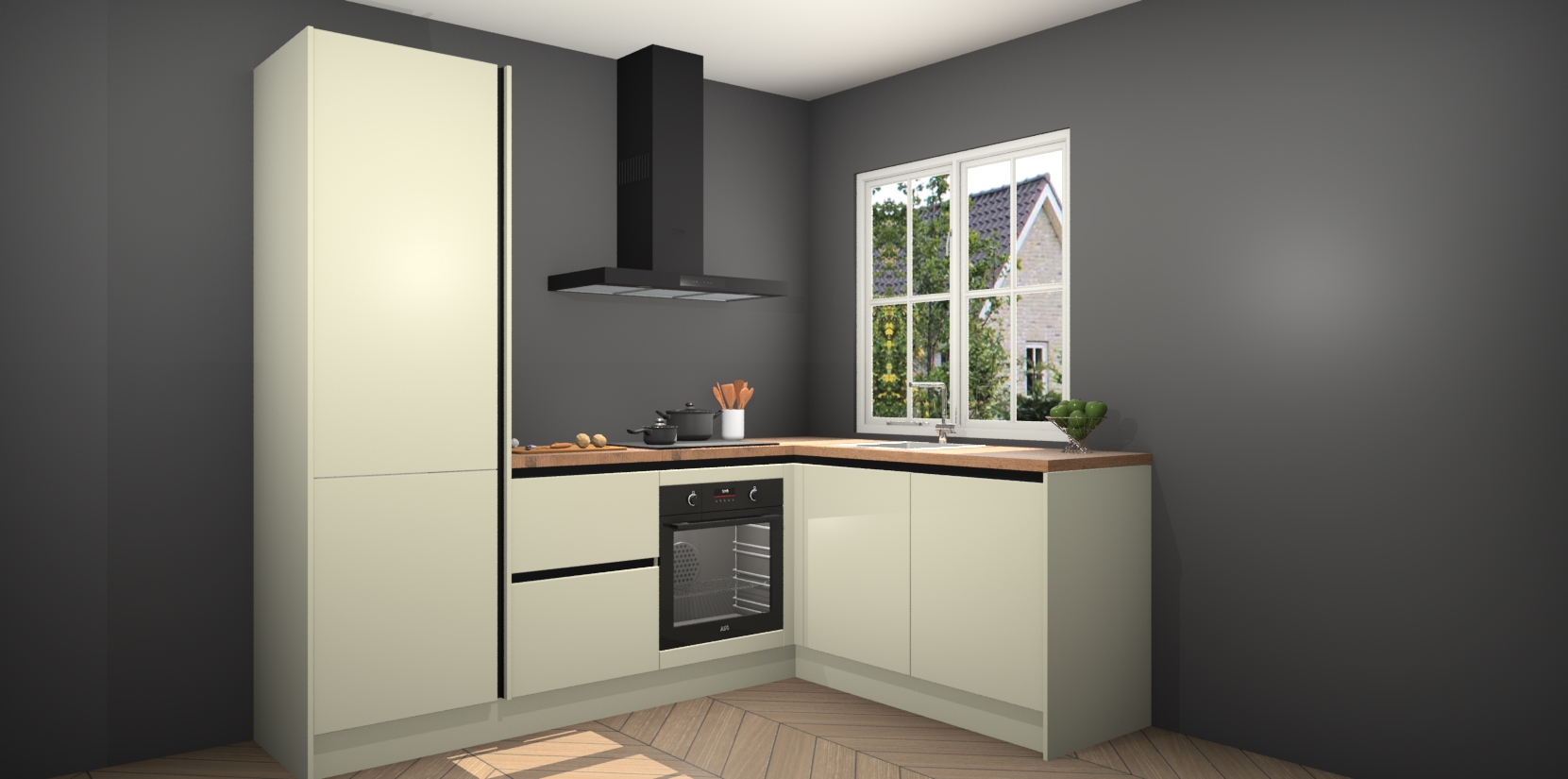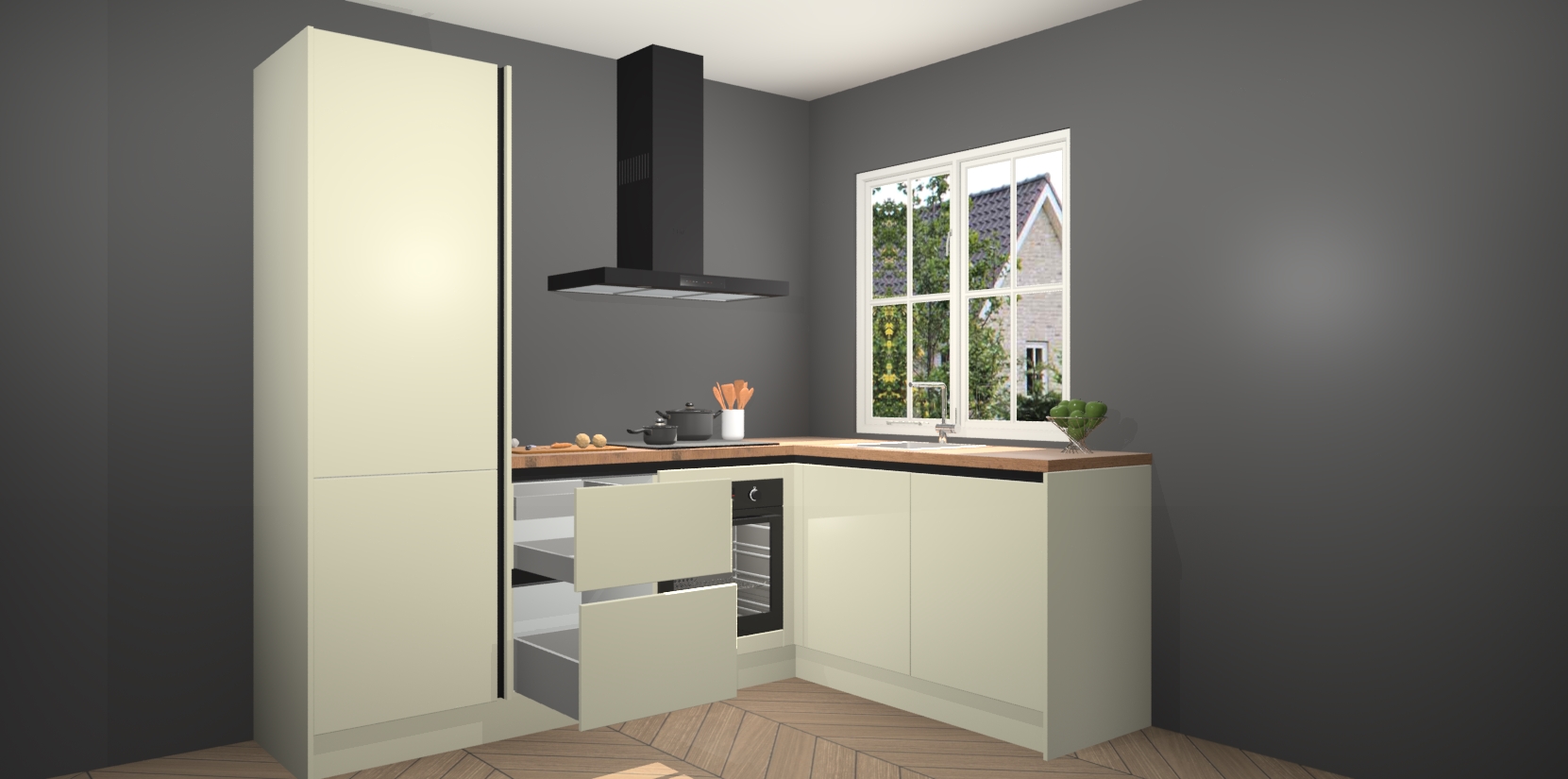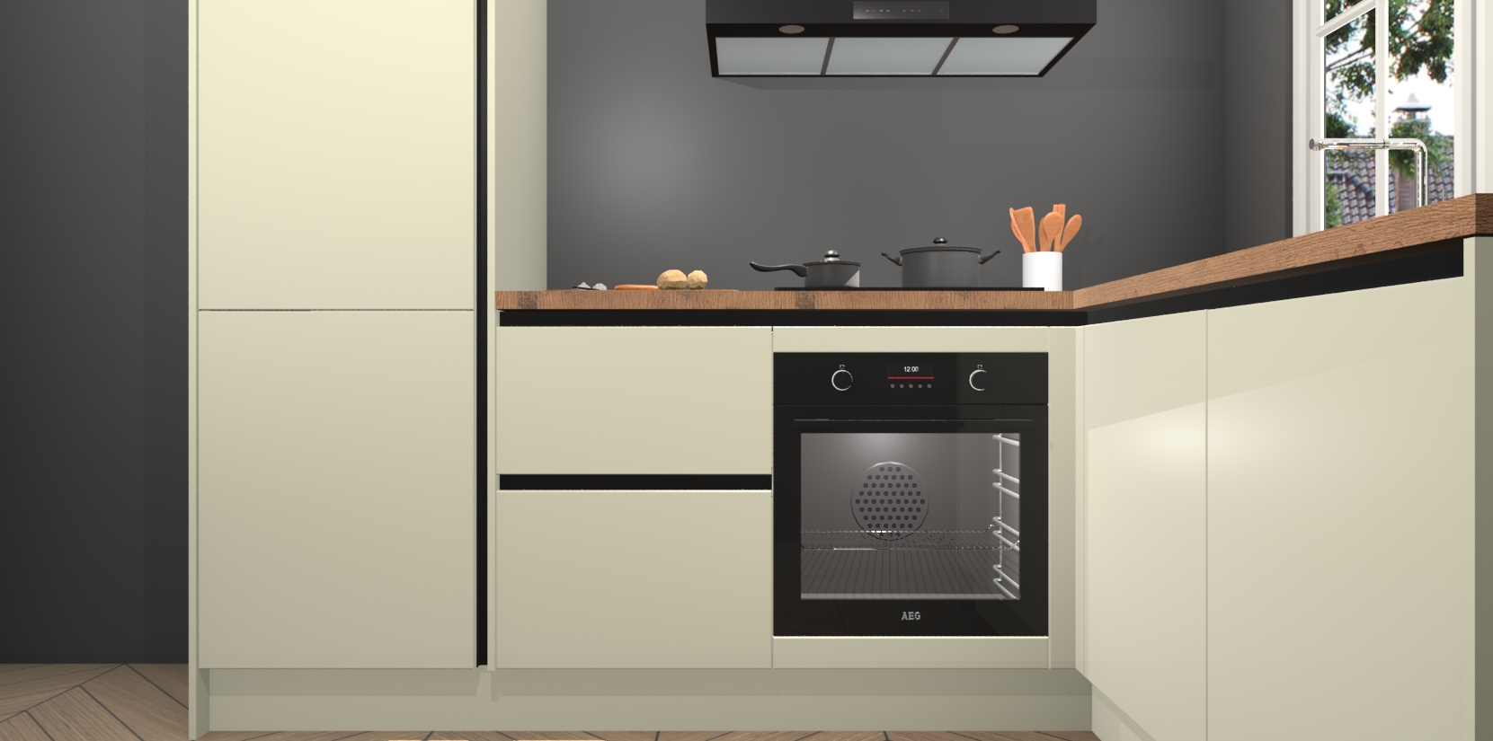 Inclusief plinten, stelpoten en werkblad
