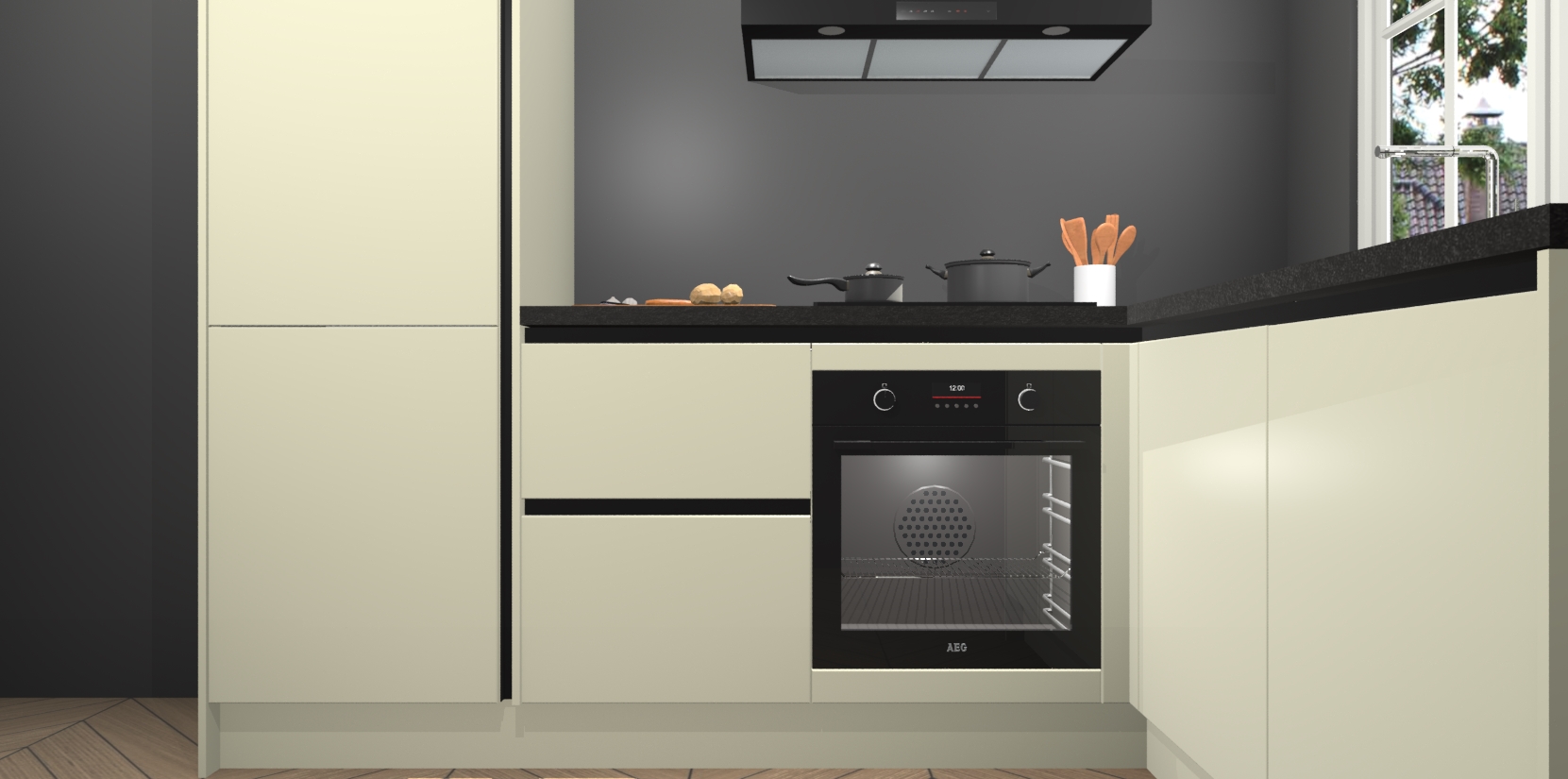 Inclusief plinten, stelpoten en werkblad