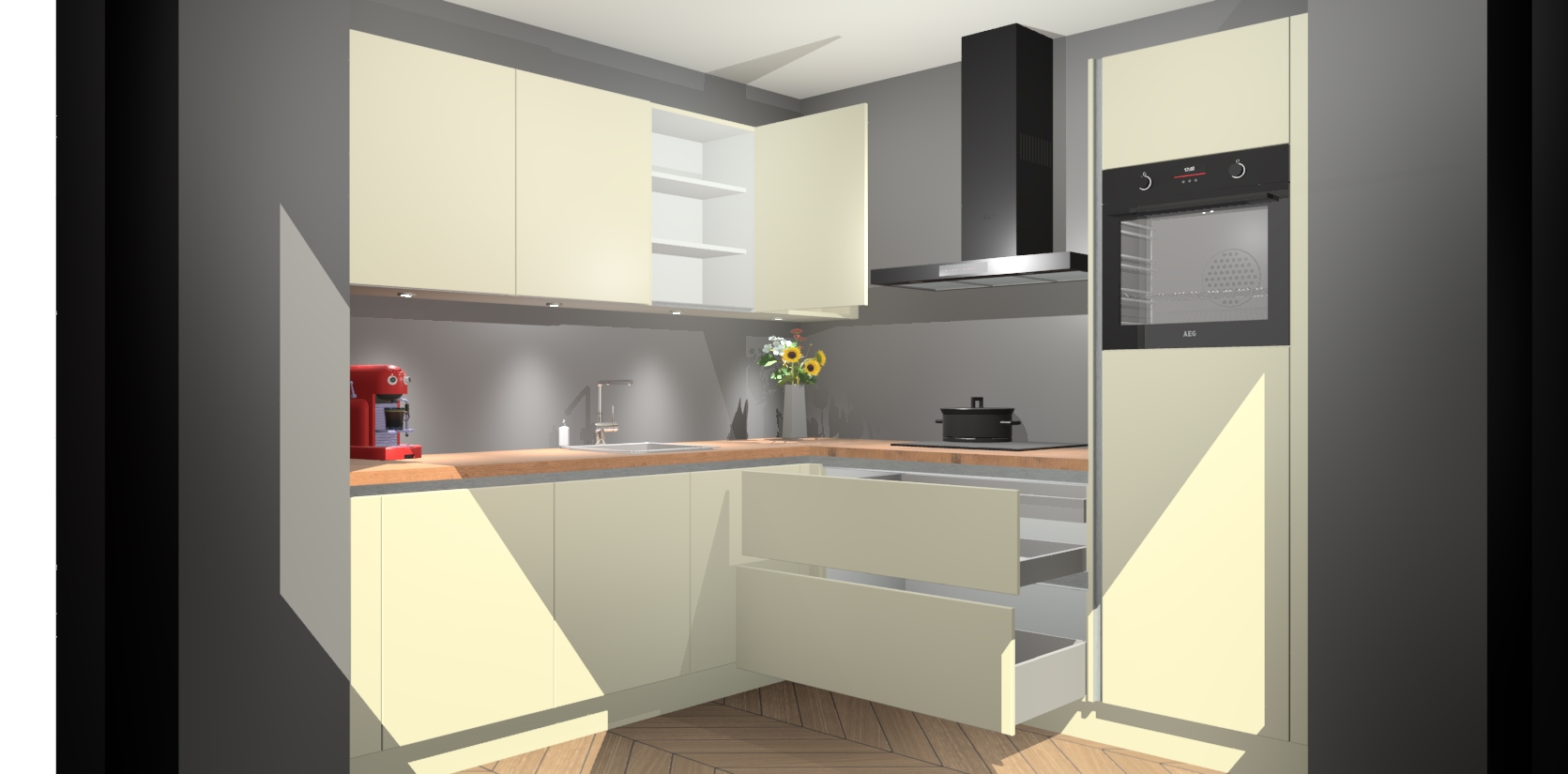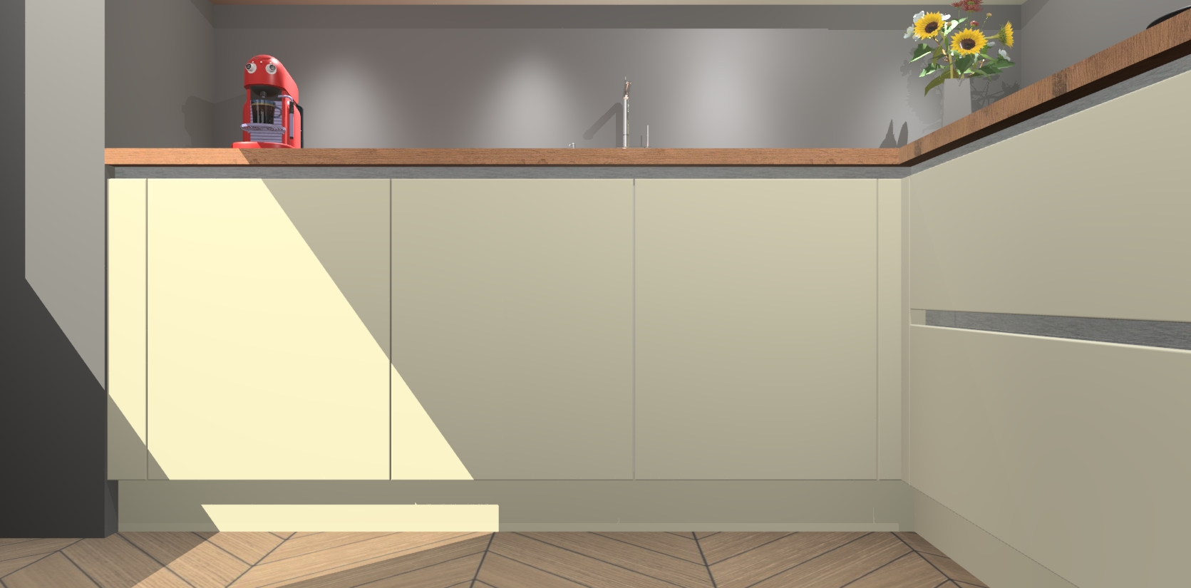 Inclusief plinten, stelpoten en werkblad