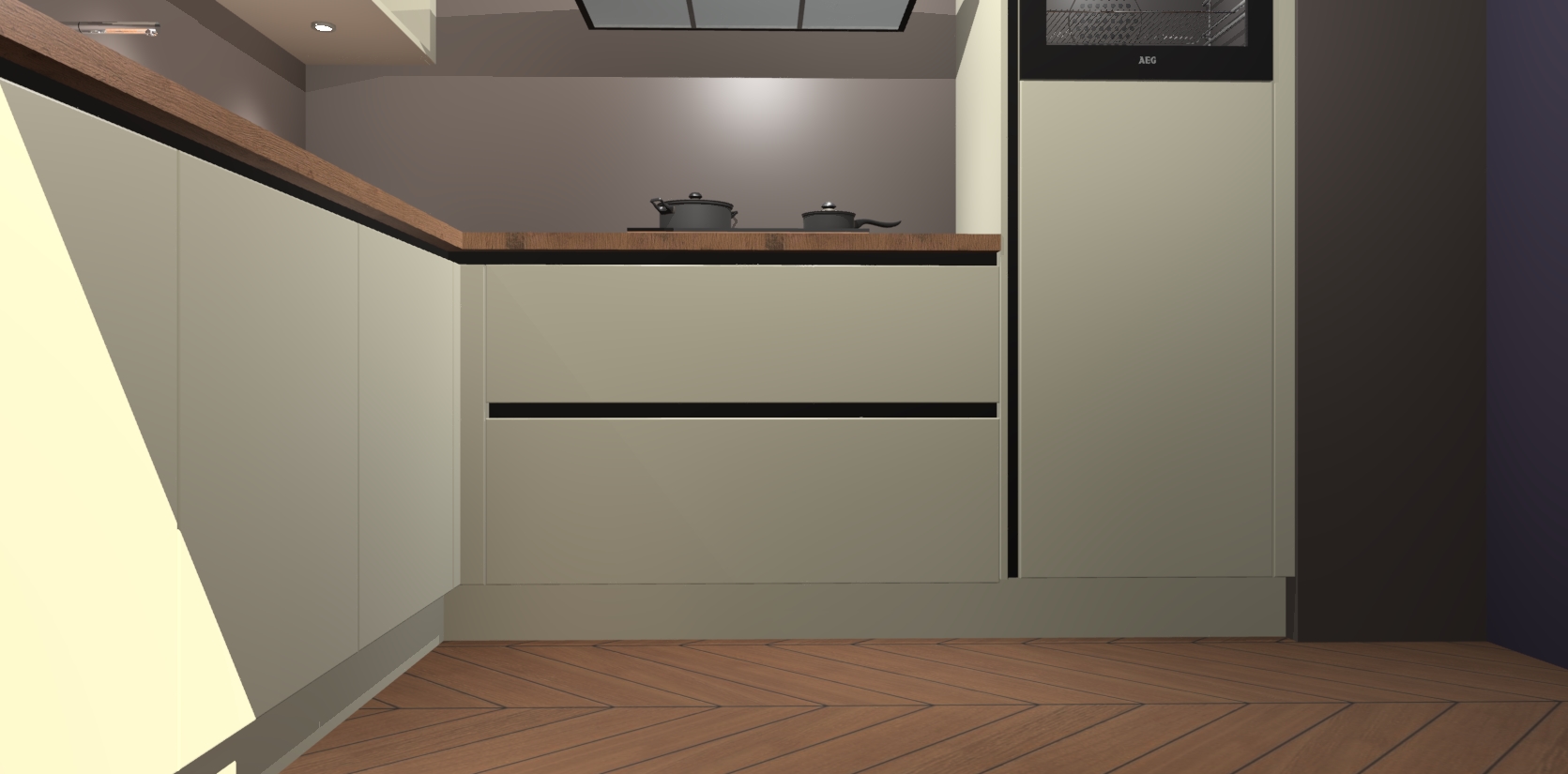 Met een modern, tijdloos design en ruime opslagruimte, zult u zich in no-time thuis voelen in uw nieuwe keuken. Uw leven wordt eenvoudiger met de soft-close deuren die voor het ultieme stille comfort zorgen - geen geluid dat u stoort terwijl u kookt. Ook is de keuken voorzien van 5 ingebouwde apparaten: een oven, inductie kookplaat, afzuigkap, vaatwasser en koelkast. Deze kunnen gemakkelijk na bestelling worden bijgewerkt naar AEG - waardoor uw luxe ervaring compleet is.