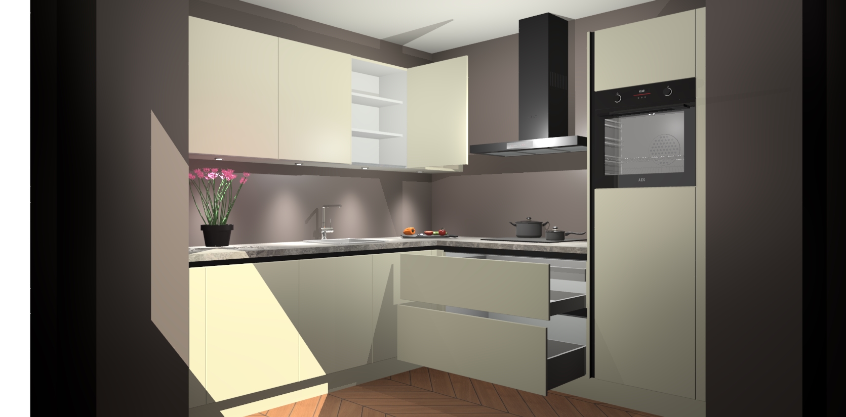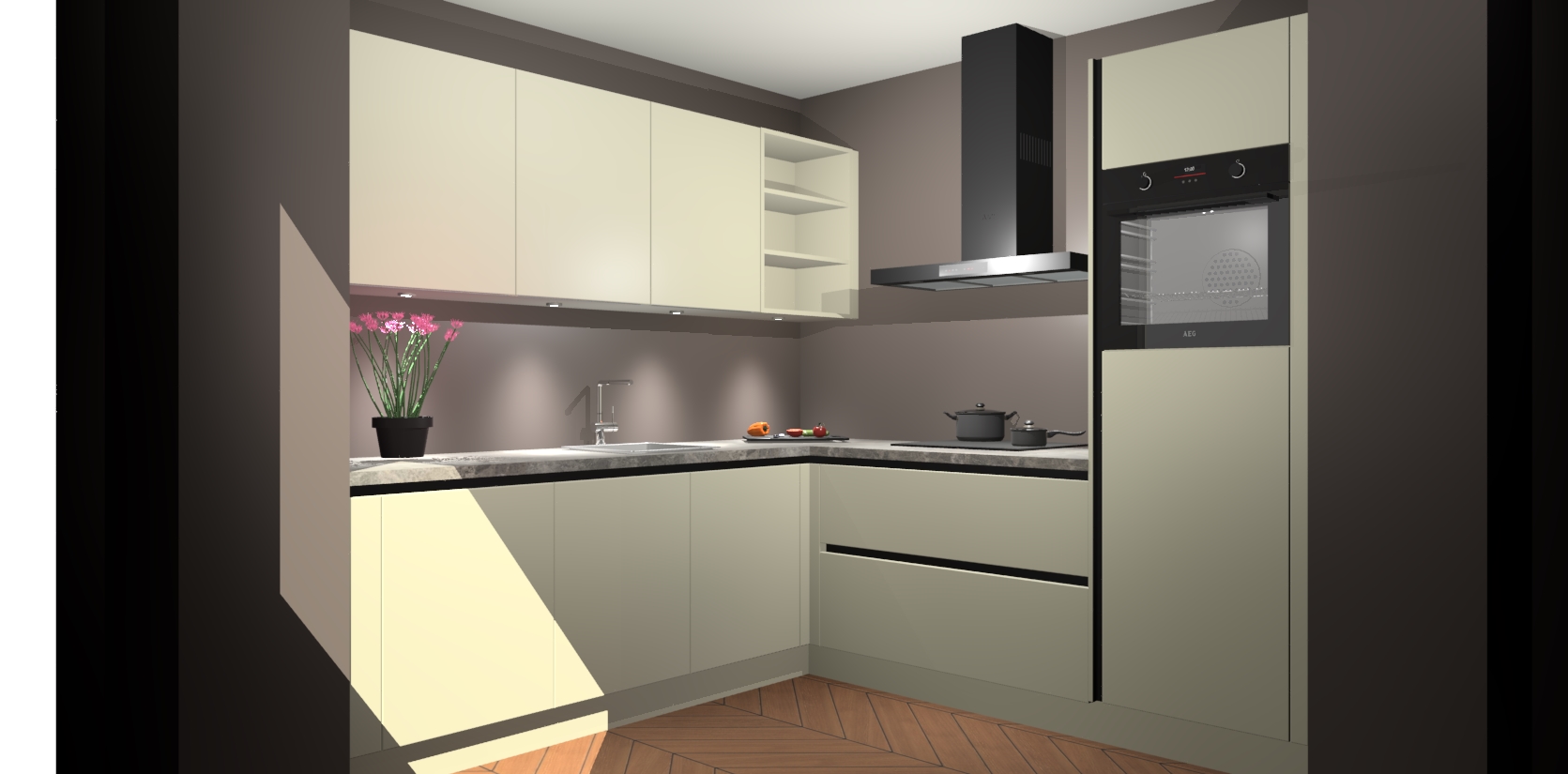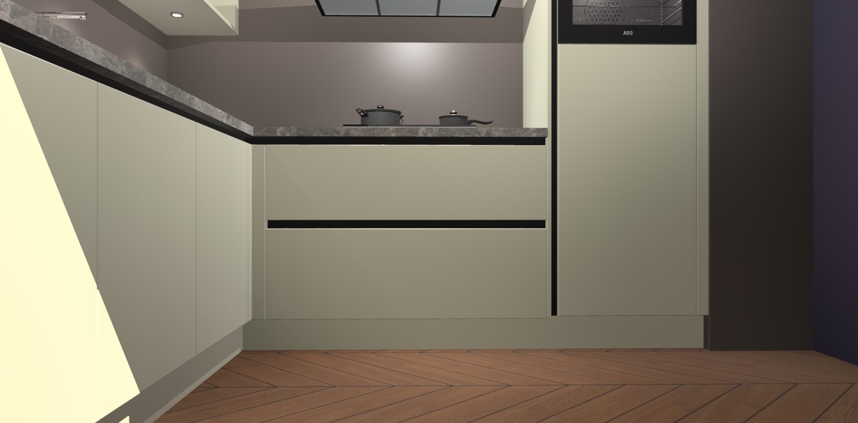 Met een modern, tijdloos design en ruime opslagruimte, zult u zich in no-time thuis voelen in uw nieuwe keuken. Uw leven wordt eenvoudiger met de soft-close deuren die voor het ultieme stille comfort zorgen - geen geluid dat u stoort terwijl u kookt. Ook is de keuken voorzien van 5 ingebouwde apparaten: een oven, inductie kookplaat, afzuigkap, vaatwasser en koelkast. Deze kunnen gemakkelijk na bestelling worden bijgewerkt naar AEG - waardoor uw luxe ervaring compleet is.