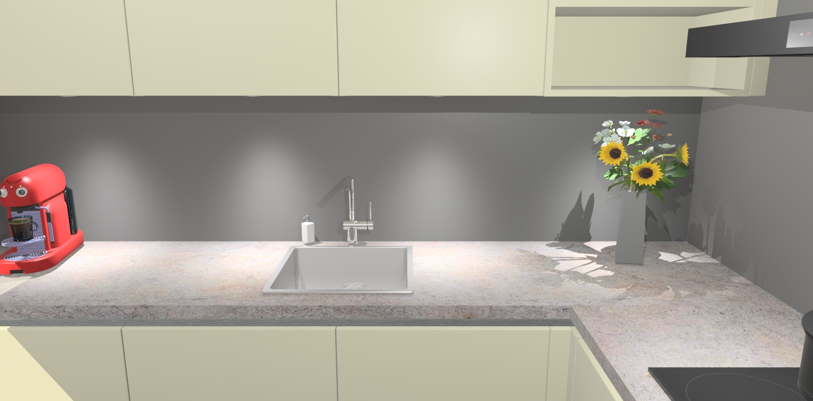 - De spoelbak is nog niet in gevreesd, dit dient tijdens het werk gedaan te worden