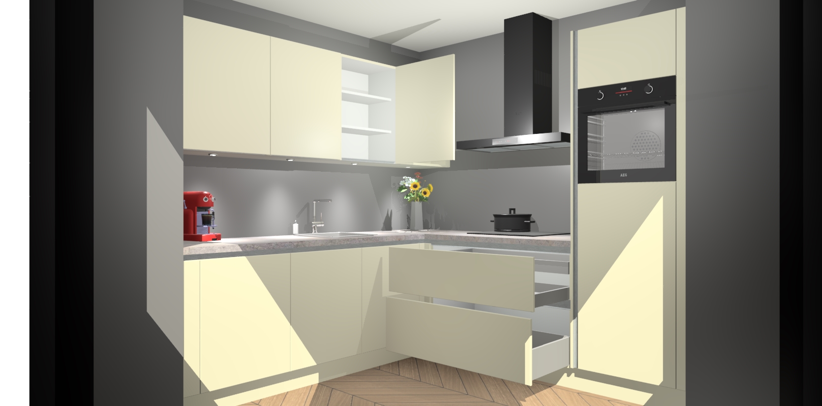 Met een modern, tijdloos design en ruime opslagruimte, zult u zich in no-time thuis voelen in uw nieuwe keuken. Uw leven wordt eenvoudiger met de soft-close deuren die voor het ultieme stille comfort zorgen - geen geluid dat u stoort terwijl u kookt. Ook is de keuken voorzien van 5 ingebouwde apparaten: een oven, inductie kookplaat, afzuigkap, vaatwasser en koelkast. Deze kunnen gemakkelijk na bestelling worden bijgewerkt naar AEG - waardoor uw luxe ervaring compleet is.