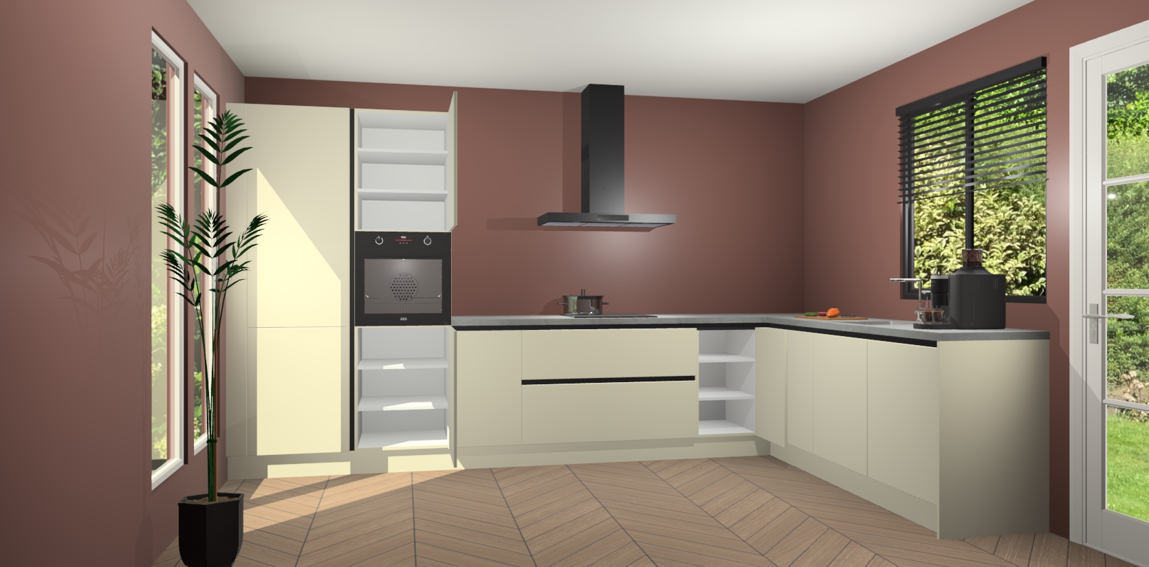 Met een modern, tijdloos design en ruime opslagruimte, zult u zich in no-time thuis voelen in uw nieuwe keuken. Uw leven wordt eenvoudiger met de soft-close deuren die voor het ultieme stille comfort zorgen - geen geluid dat u stoort terwijl u kookt. Ook is de keuken voorzien van 5 ingebouwde apparaten: een oven, inductie kookplaat, afzuigkap, vaatwasser en koelkast. Deze kunnen gemakkelijk na bestelling worden bijgewerkt naar AEG - waardoor uw luxe ervaring compleet is.