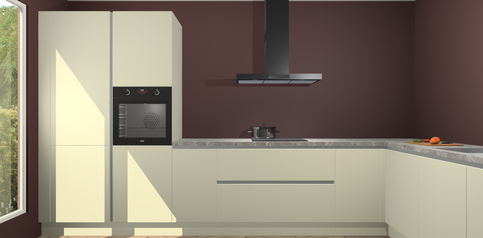 Met een modern, tijdloos design en ruime opslagruimte, zult u zich in no-time thuis voelen in uw nieuwe keuken. Uw leven wordt eenvoudiger met de soft-close deuren die voor het ultieme stille comfort zorgen - geen geluid dat u stoort terwijl u kookt. Ook is de keuken voorzien van 5 ingebouwde apparaten: een oven, inductie kookplaat, afzuigkap, vaatwasser en koelkast. Deze kunnen gemakkelijk na bestelling worden bijgewerkt naar AEG - waardoor uw luxe ervaring compleet is.
