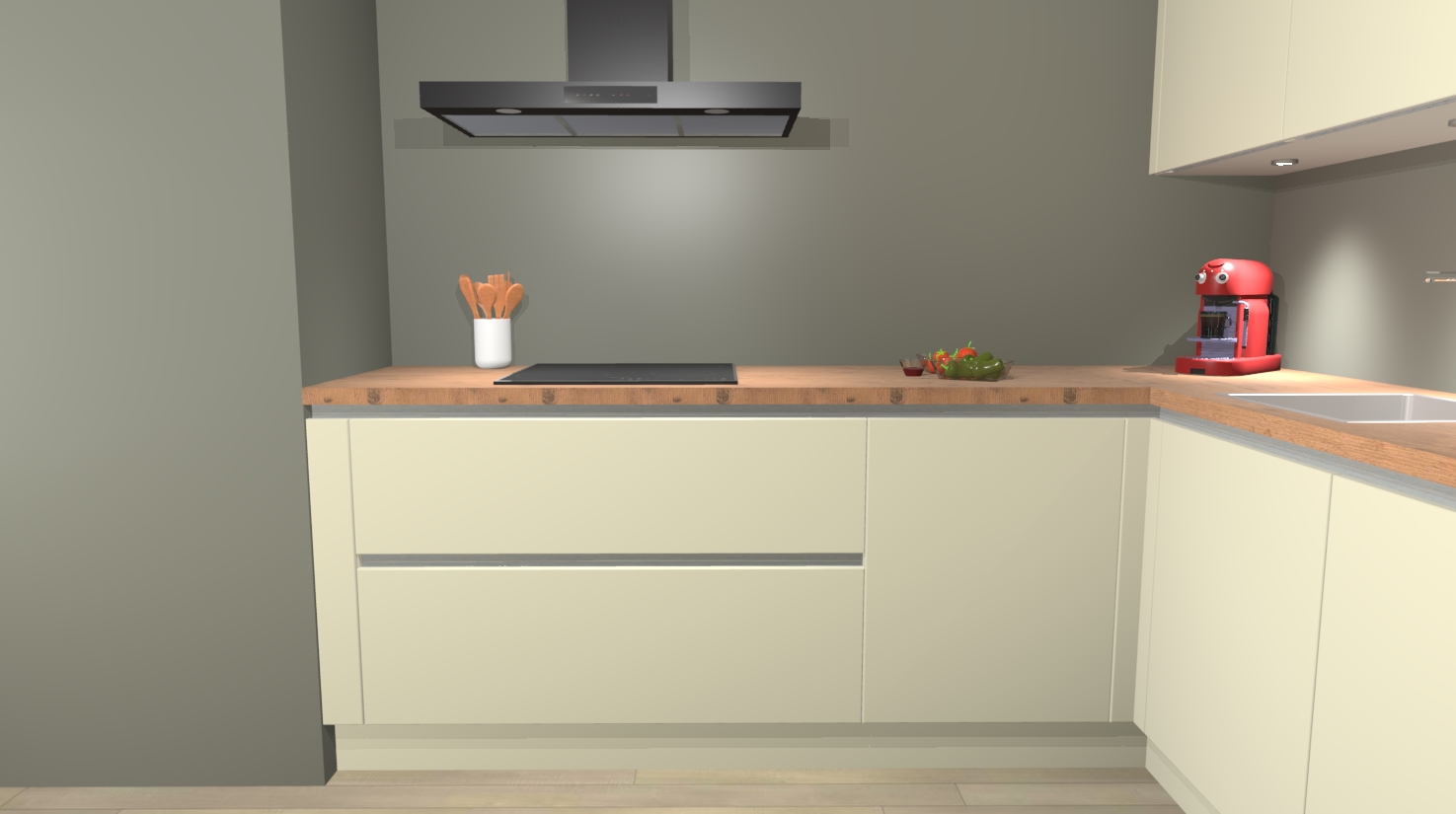 In deze box zijn alle kleuren verzameld van de deuren en werkbladen. Vraag de gratis kleurenbox aan en kijk thuis rustig verder!