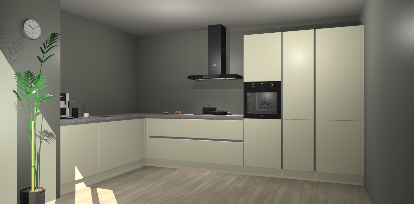 Welkom bij de magnolia greeploze keuken Nuuk. Deze prachtige keuken zal de komende jaren het middelpunt van de belangstelling in uw huis zijn. Uitgerust met vijf inbouwapparaten komt u nooit kookgereedschap tekort.