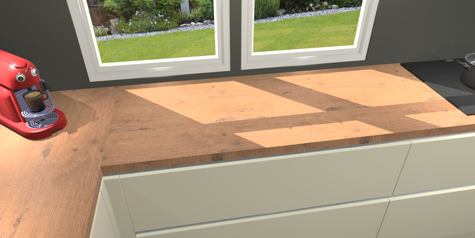 - Bij een hoekwerkblad zijn de hoeken in gevreesd en op maat gemaakt