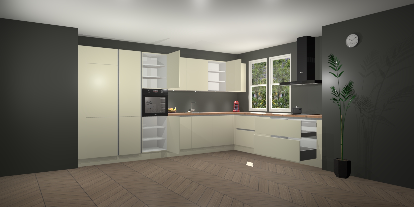 In deze box zijn alle kleuren verzameld van de deuren en werkbladen. Vraag de gratis kleurenbox aan en kijk thuis rustig verder!