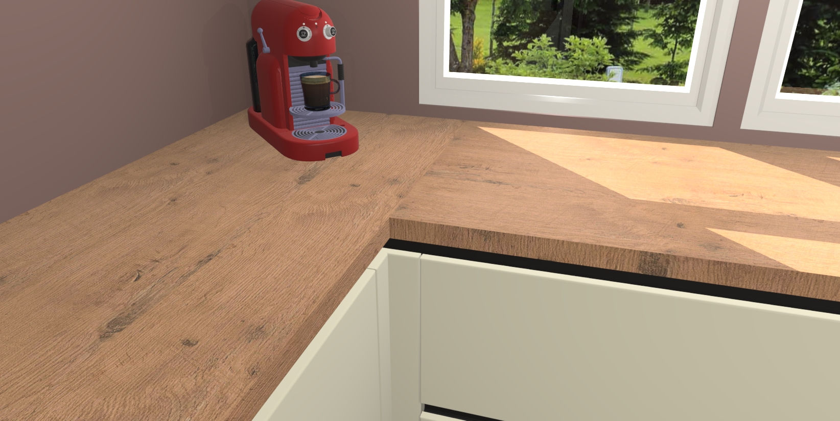 - Bij een hoekwerkblad zijn de hoeken in gevreesd en op maat gemaakt