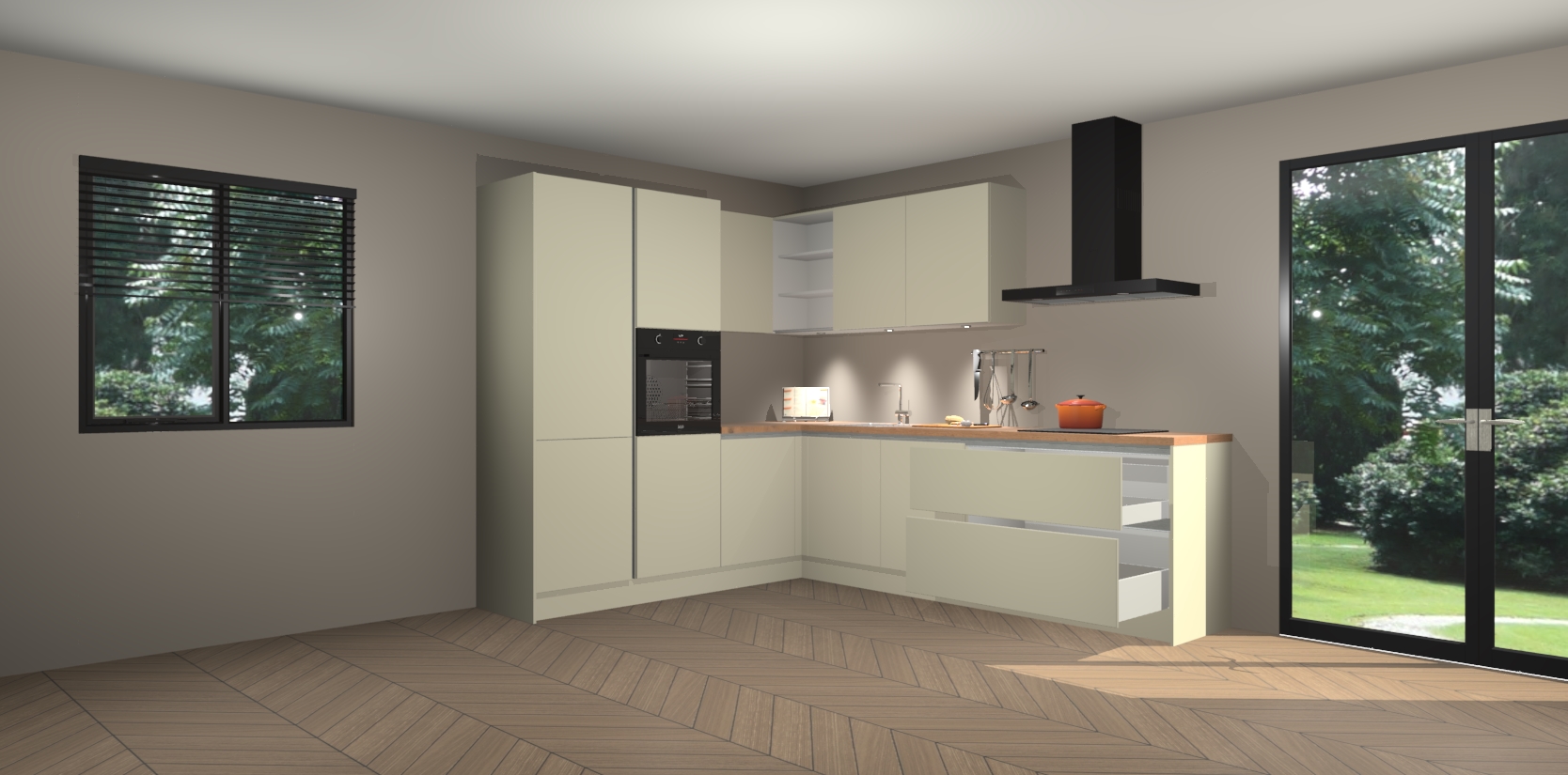 Maak kennis met de magnolia greeploze keuken Parla - de perfecte aanvulling voor uw moderne keuken! Ervaar tijdloos design, elegantie en een chique uitstraling met onze zwarte handgrepen, soft-close deuren en veel opbergruimte. Dit alles wordt aangeboden tegen een vaste lage prijs voor ongeëvenaarde Duitse keukenkwaliteit!