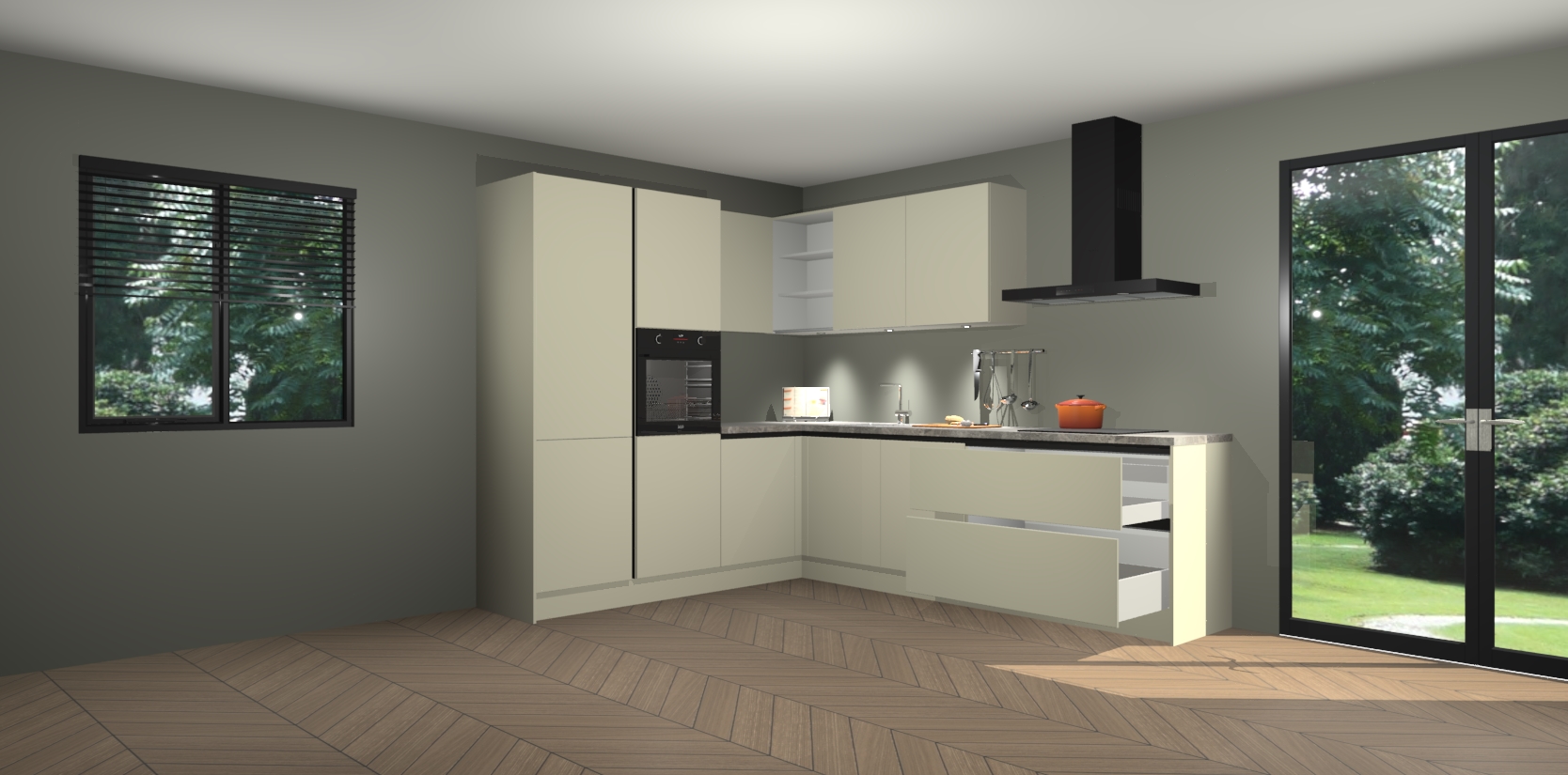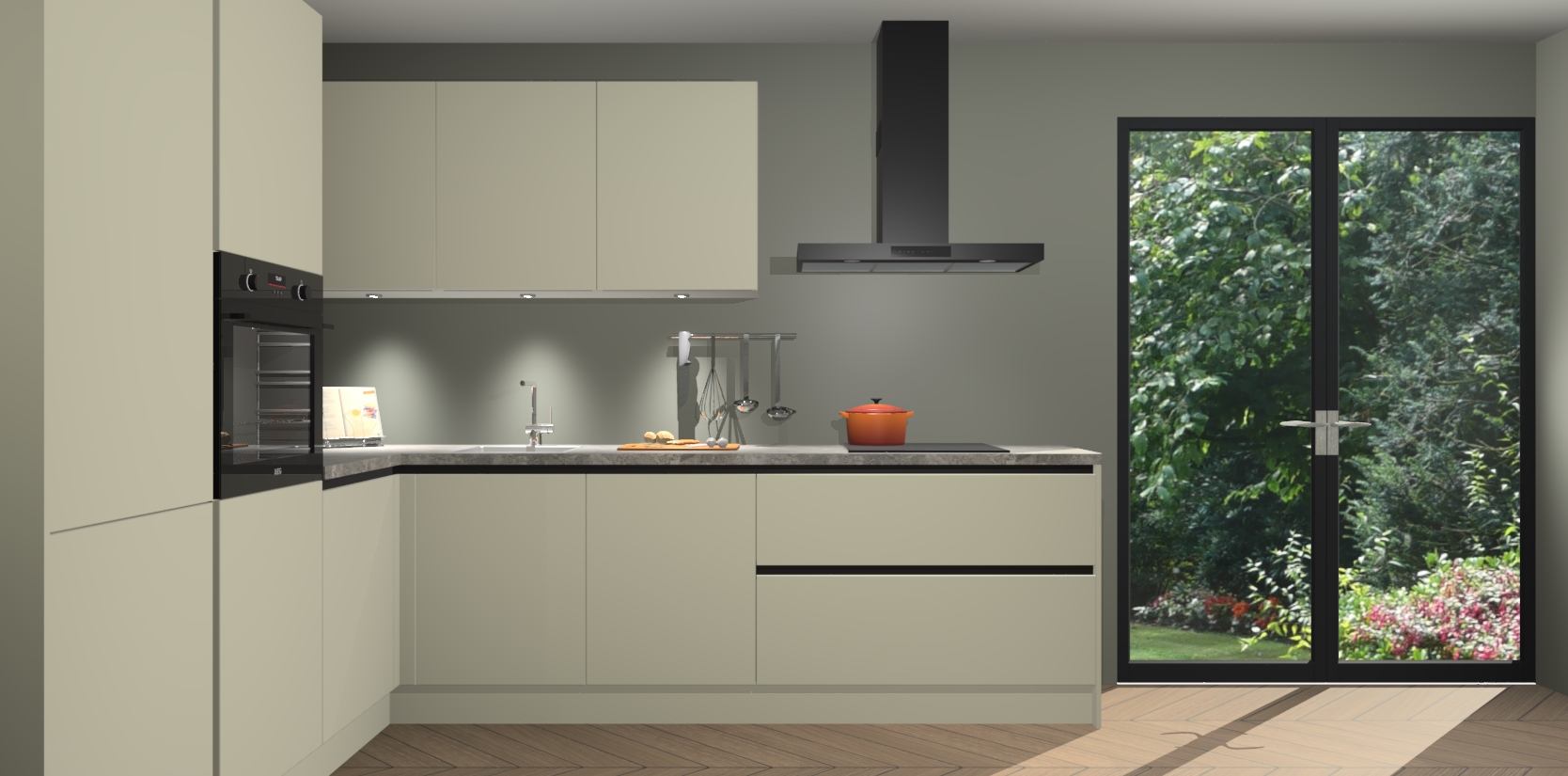 Maak kennis met de magnolia greeploze keuken Parla - de perfecte aanvulling voor uw moderne keuken! Ervaar tijdloos design, elegantie en een chique uitstraling met onze zwarte handgrepen, soft-close deuren en veel opbergruimte. Dit alles wordt aangeboden tegen een vaste lage prijs voor ongeëvenaarde Duitse keukenkwaliteit!