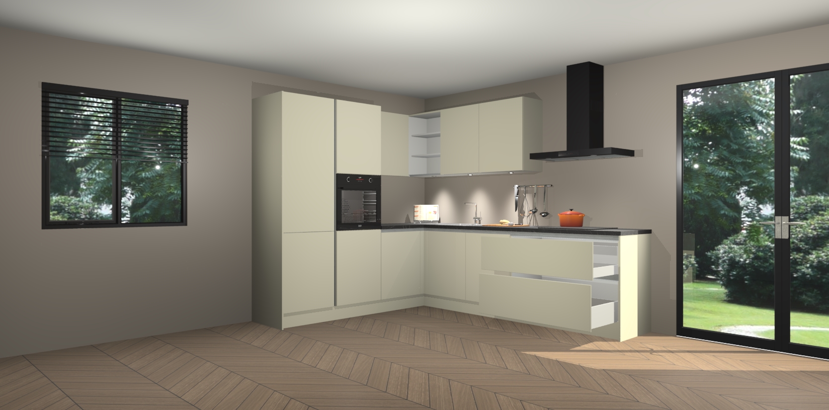 Maak kennis met de magnolia greeploze keuken Parla - de perfecte aanvulling voor uw moderne keuken! Ervaar tijdloos design, elegantie en een chique uitstraling met onze zwarte handgrepen, soft-close deuren en veel opbergruimte. Dit alles wordt aangeboden tegen een vaste lage prijs voor ongeëvenaarde Duitse keukenkwaliteit!