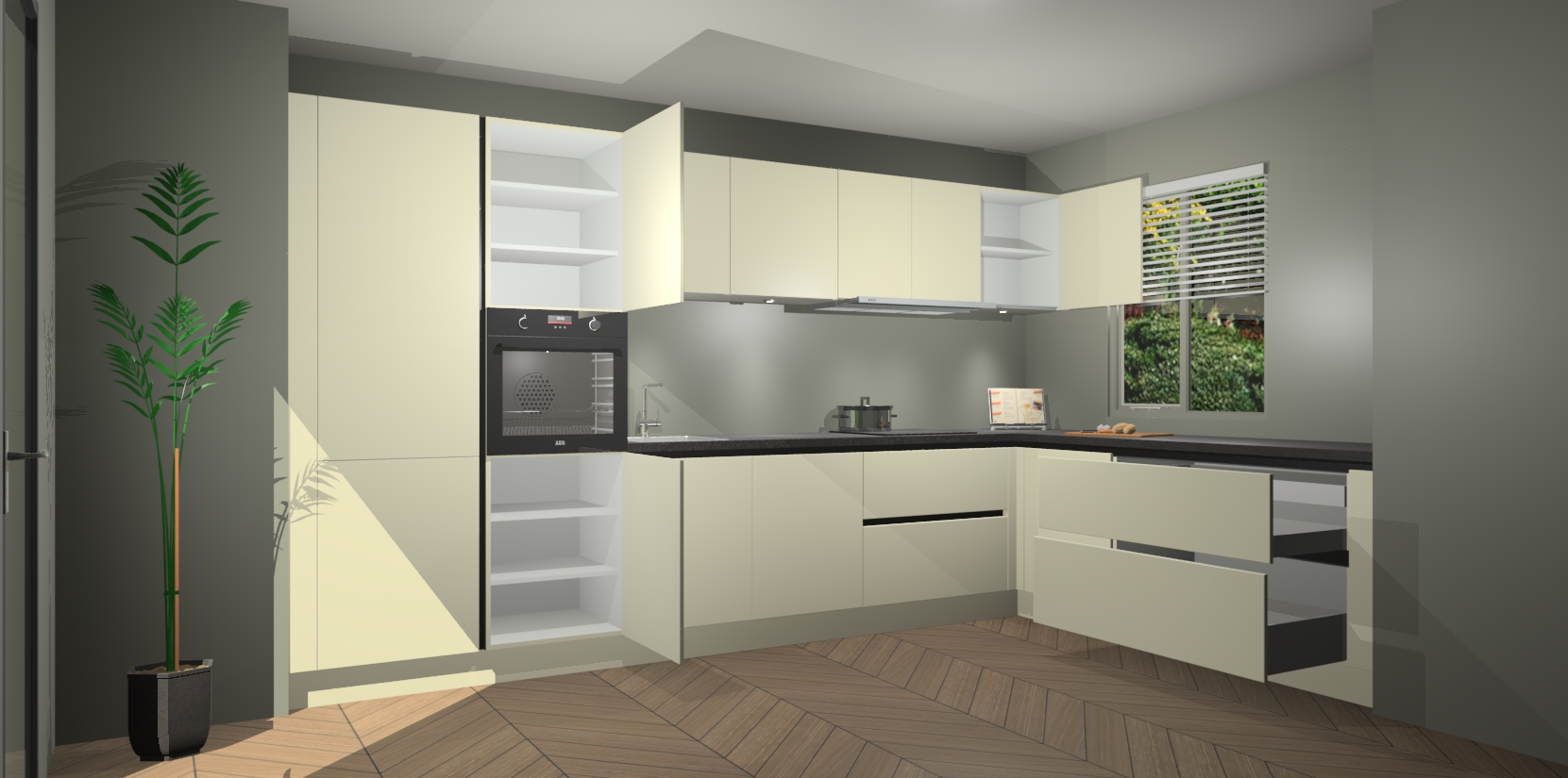 In deze box zijn alle kleuren verzameld van de deuren en werkbladen. Vraag de gratis kleurenbox aan en kijk thuis rustig verder!