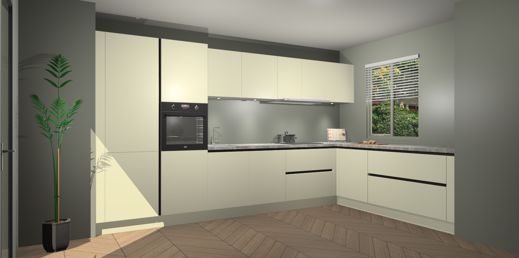Inclusief plinten, stelpoten en werkblad