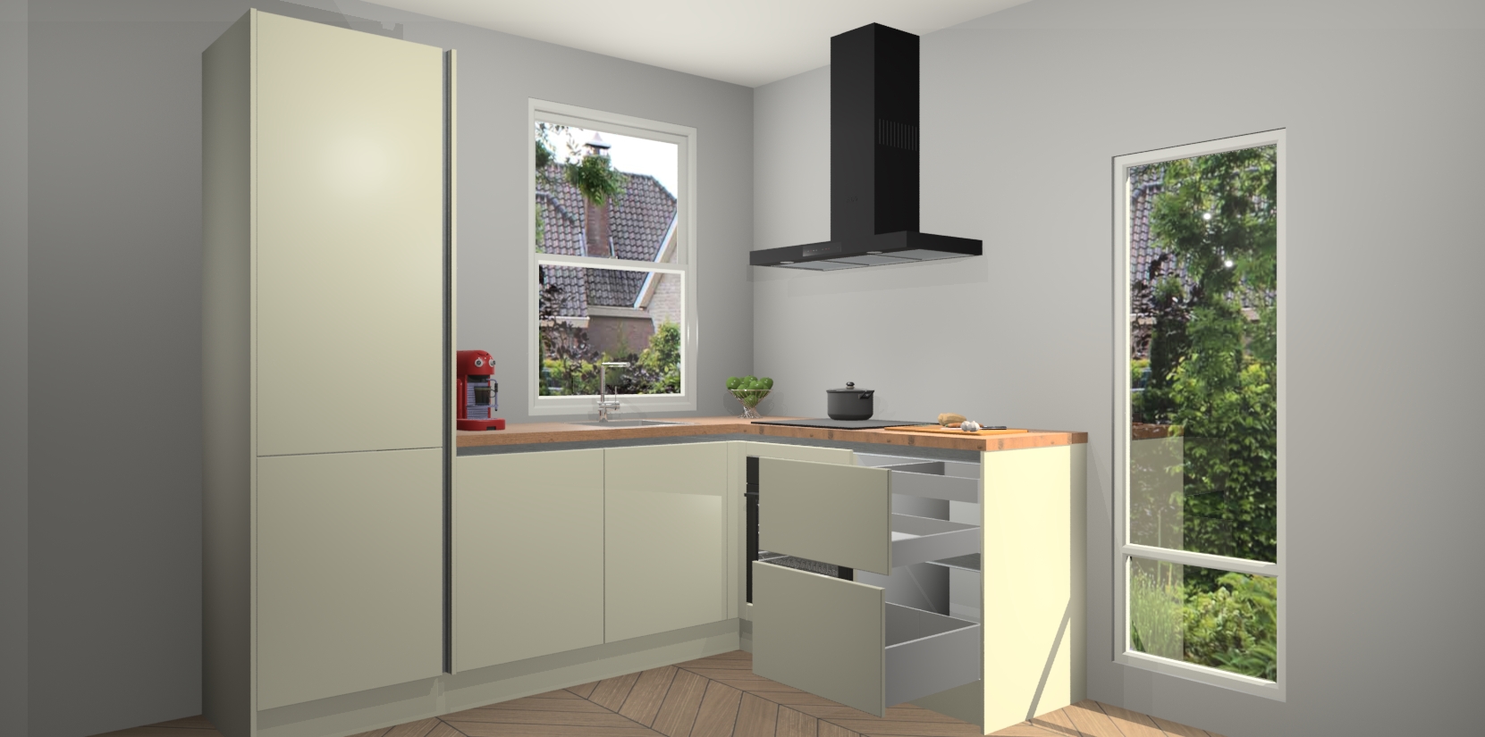 Inclusief plinten, stelpoten en werkblad