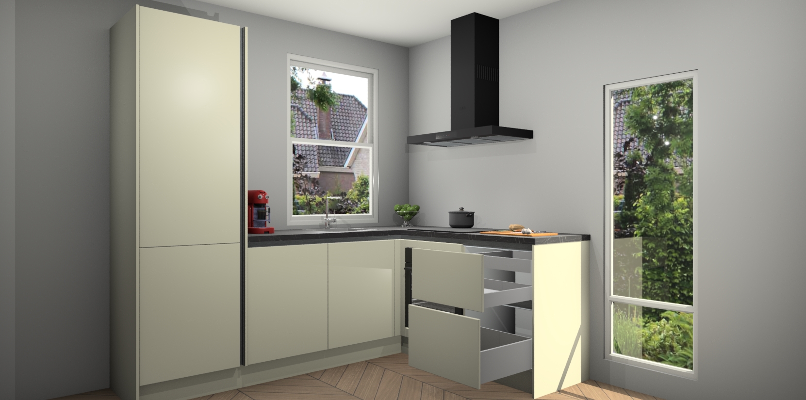 Inclusief plinten, stelpoten en werkblad