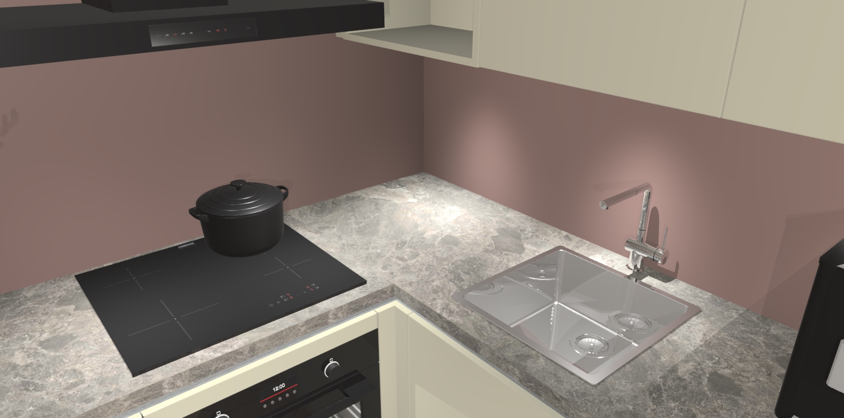 - Uitsparing van kookplaat, spoelbak en kraan dient u zelf te verzorgen.