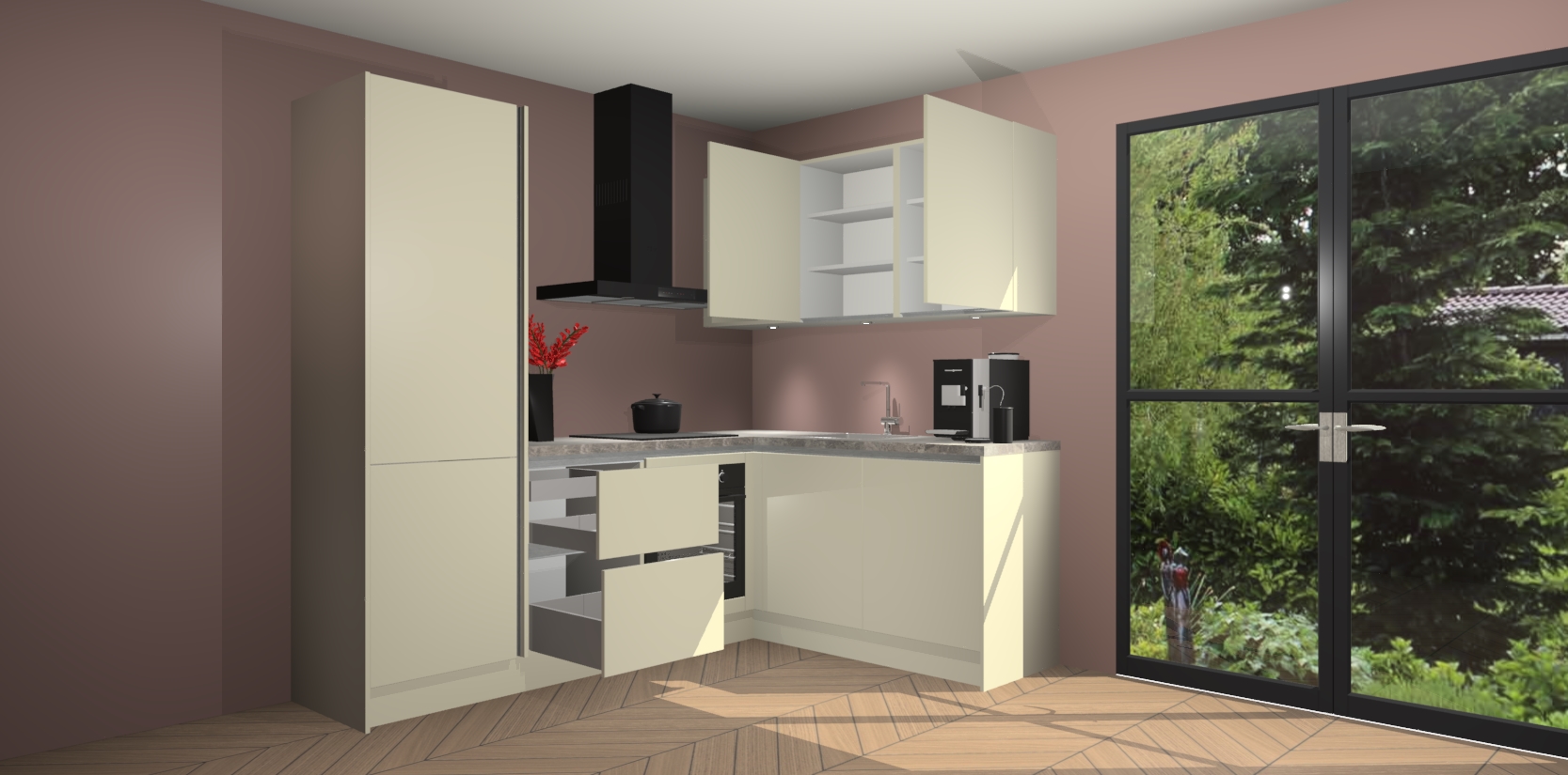 Inclusief plinten, stelpoten en werkblad