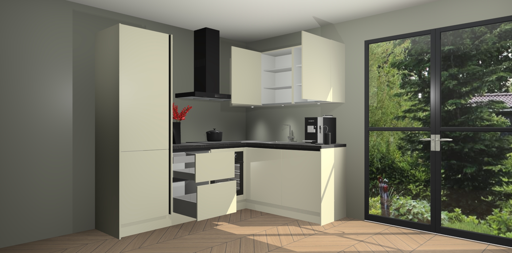 In deze box zijn alle kleuren verzameld van de deuren en werkbladen. Vraag de gratis kleurenbox aan en kijk thuis rustig verder!