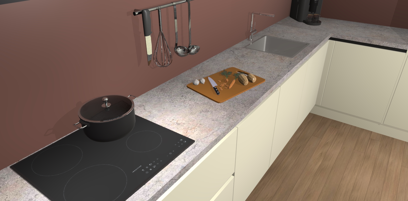 - Uitsparing van kookplaat, spoelbak en kraan dient u zelf te verzorgen.