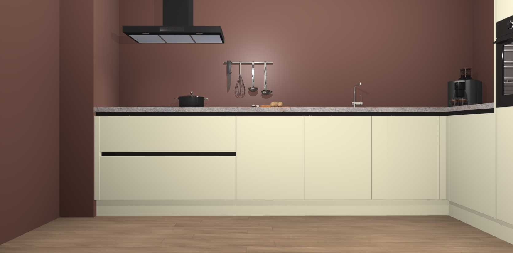 Inclusief plinten, stelpoten en werkblad
