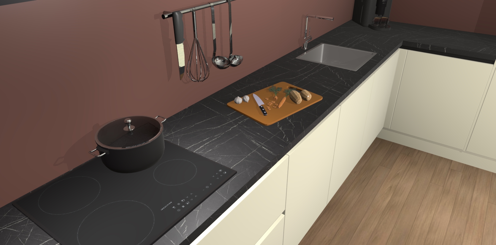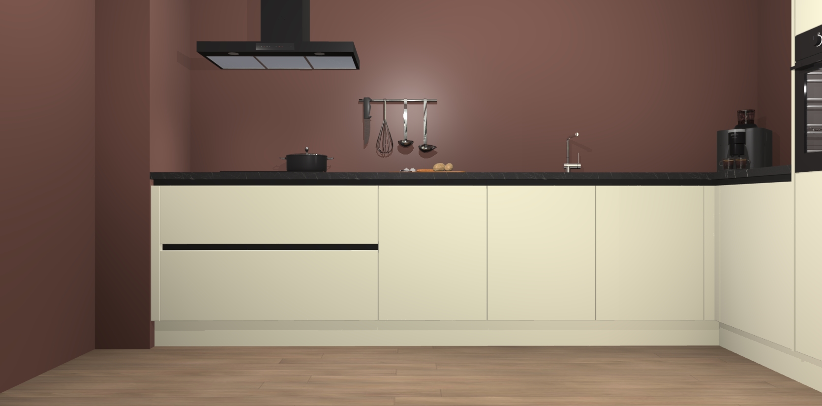 Inclusief plinten, stelpoten en werkblad