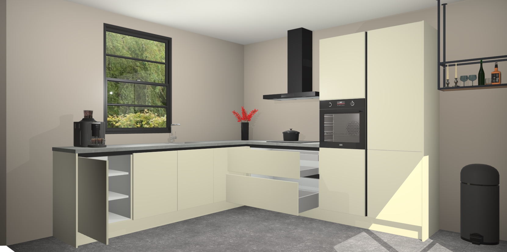 Inclusief plinten, stelpoten en werkblad