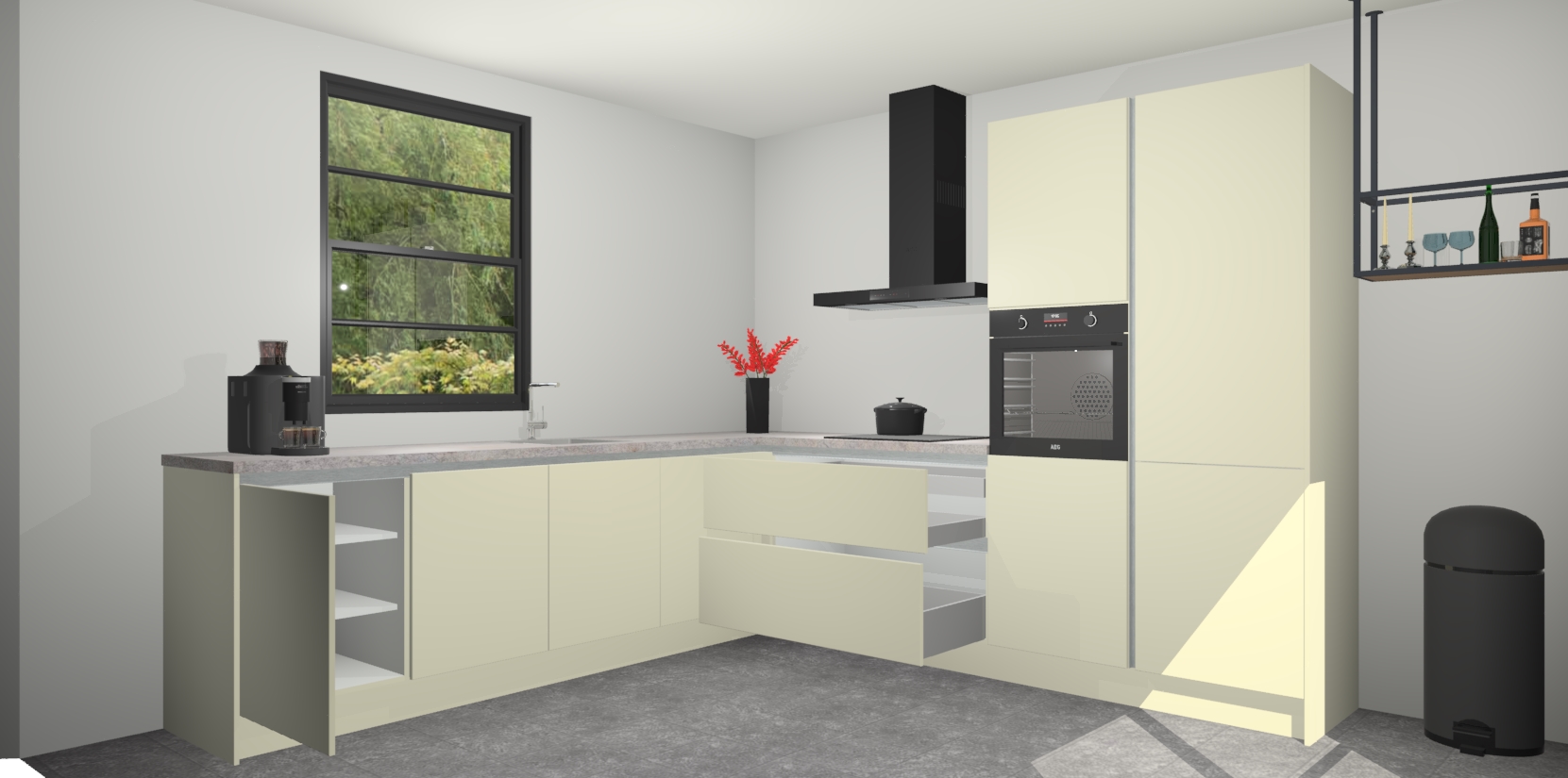 Inclusief plinten, stelpoten en werkblad