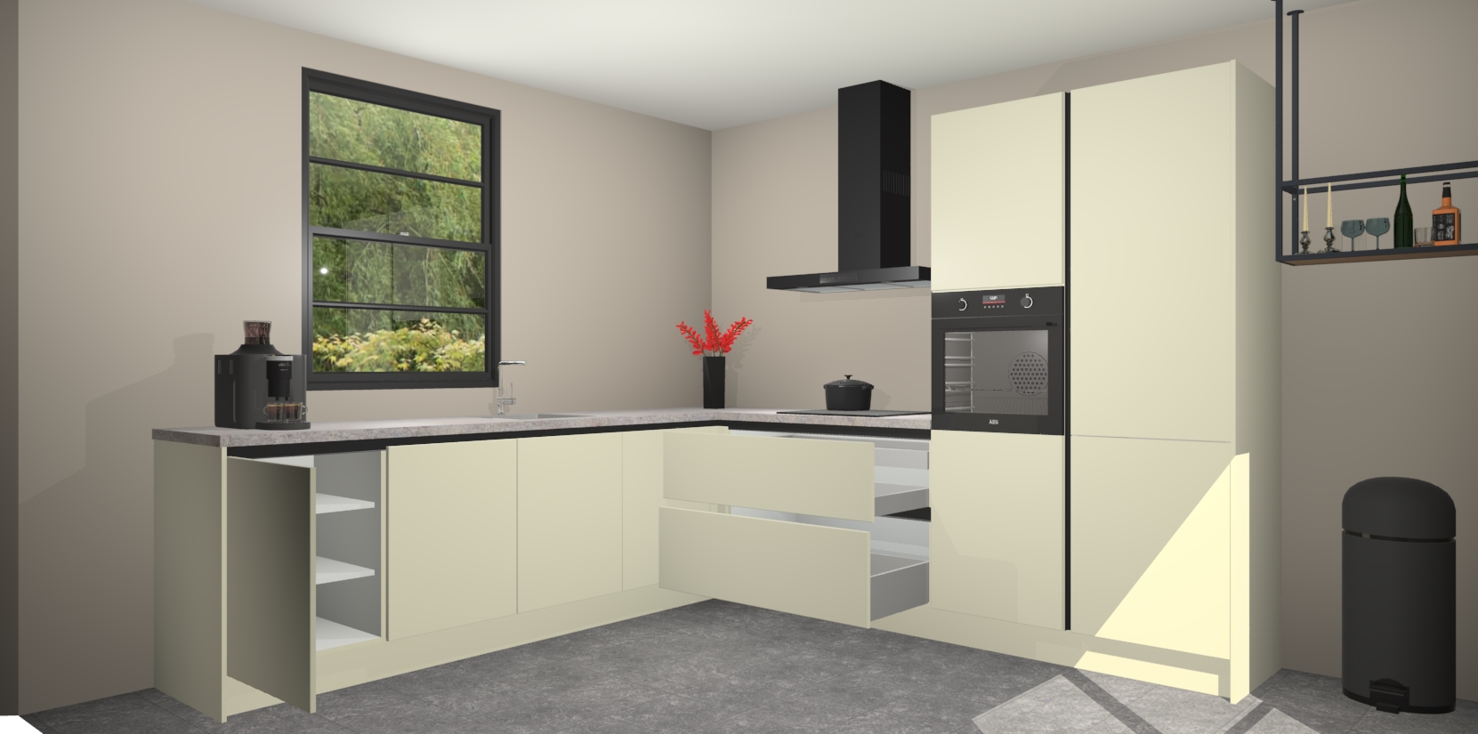 Inclusief plinten, stelpoten en werkblad
