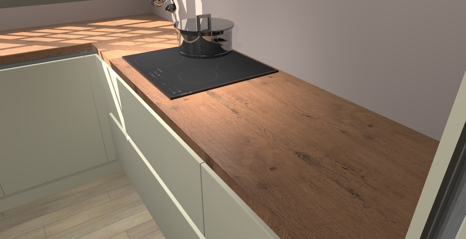 - Bij een hoekwerkblad zijn de hoeken in gevreesd en op maat gemaakt