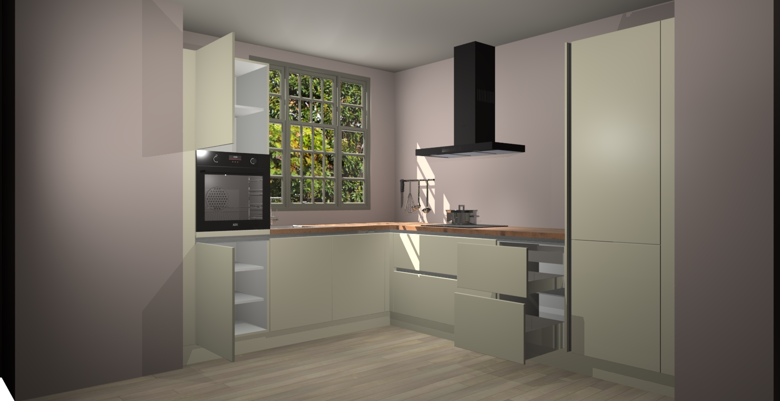 Met een modern, tijdloos design en ruime opslagruimte, zult u zich in no-time thuis voelen in uw nieuwe keuken. Uw leven wordt eenvoudiger met de soft-close deuren die voor het ultieme stille comfort zorgen - geen geluid dat u stoort terwijl u kookt. Ook is de keuken voorzien van 5 ingebouwde apparaten: een oven, inductie kookplaat, afzuigkap, vaatwasser en koelkast. Deze kunnen gemakkelijk na bestelling worden bijgewerkt naar AEG - waardoor uw luxe ervaring compleet is.
