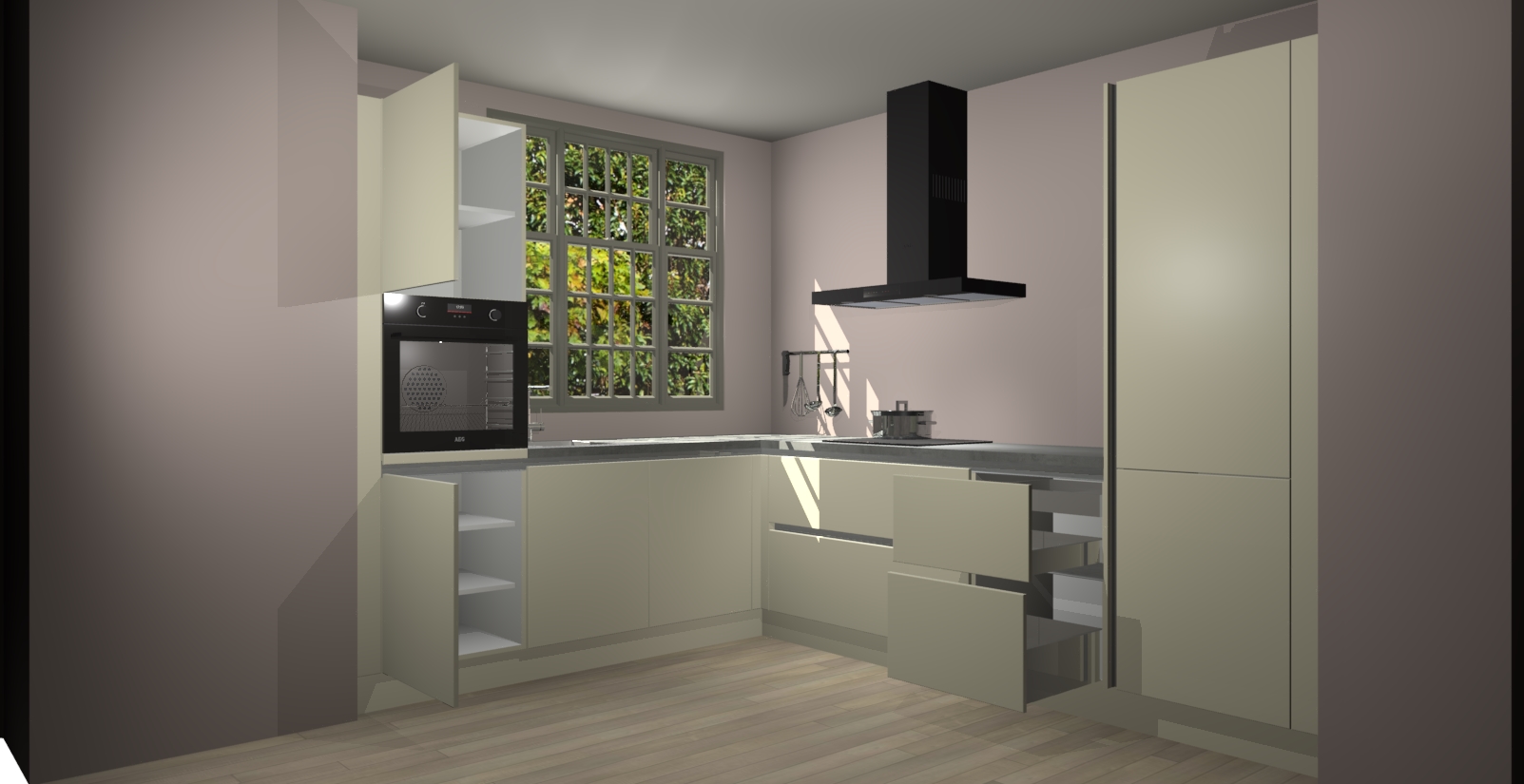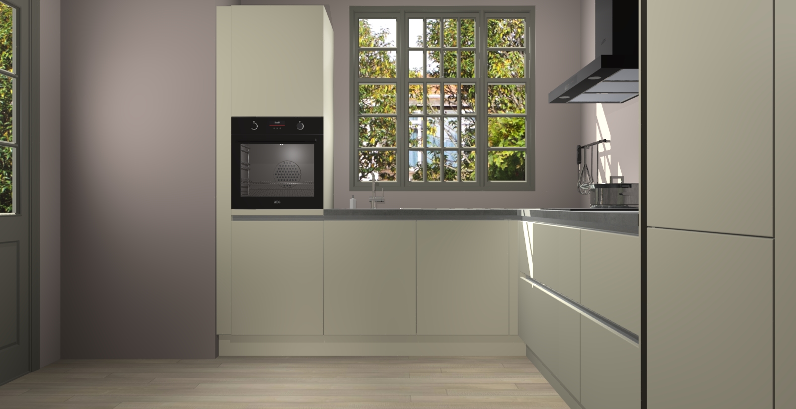 Met een modern, tijdloos design en ruime opslagruimte, zult u zich in no-time thuis voelen in uw nieuwe keuken. Uw leven wordt eenvoudiger met de soft-close deuren die voor het ultieme stille comfort zorgen - geen geluid dat u stoort terwijl u kookt. Ook is de keuken voorzien van 5 ingebouwde apparaten: een oven, inductie kookplaat, afzuigkap, vaatwasser en koelkast. Deze kunnen gemakkelijk na bestelling worden bijgewerkt naar AEG - waardoor uw luxe ervaring compleet is.